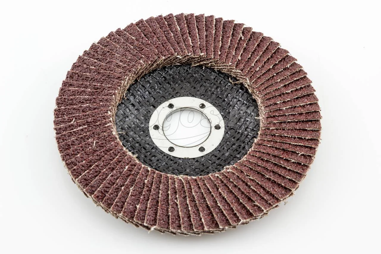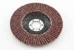 Круг лепестковый торцевой изготовлен из прямоугольных элементов шлифовальной шкурки на тканевой основе, которые расположены в виде веера на подложке из стекловолокна.