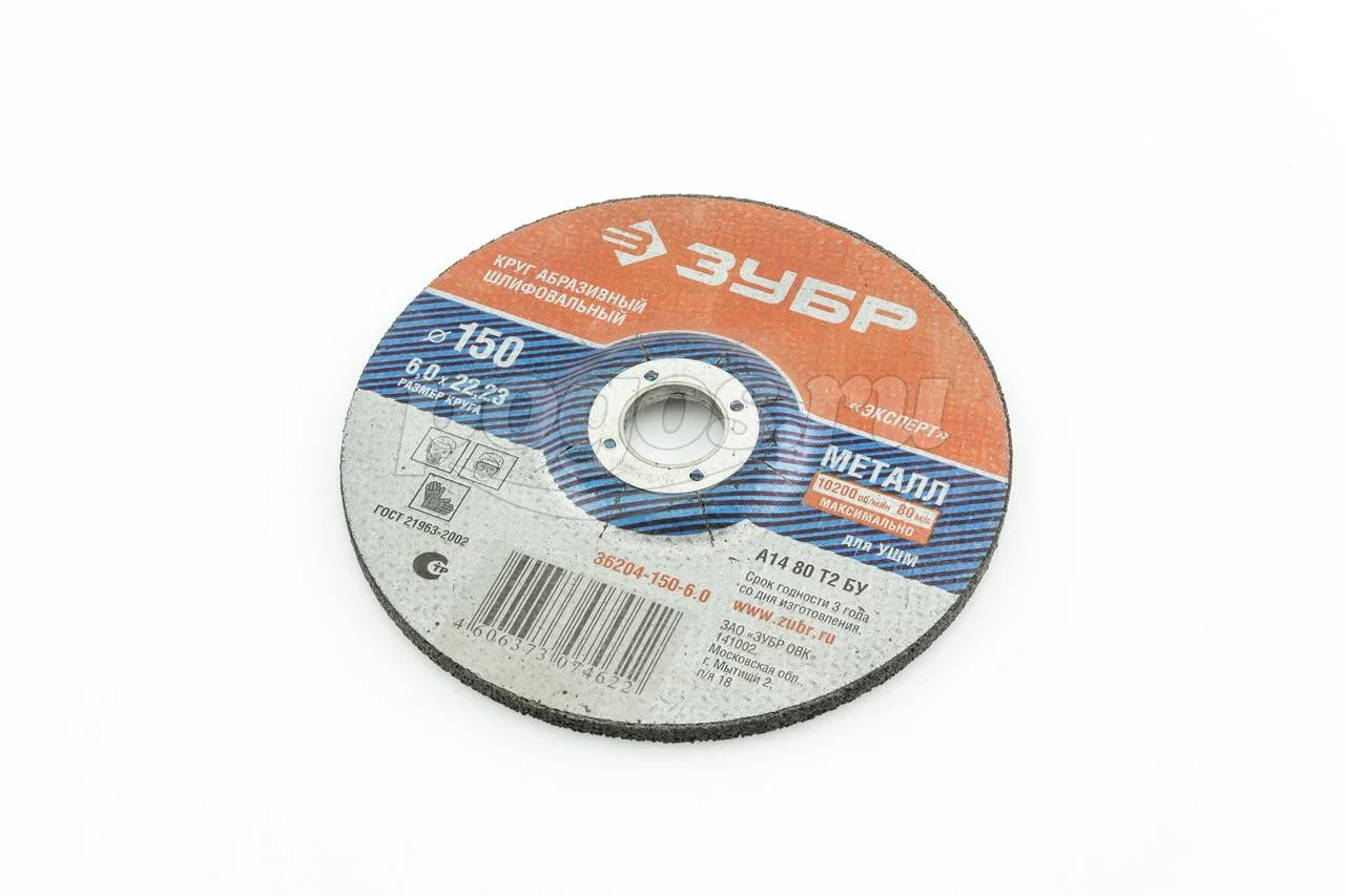 Диск шлифовальный по металлу, абразивный, 150х6х22.2мм ЗУБР, артикул: 36204-150-6.0