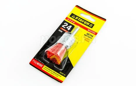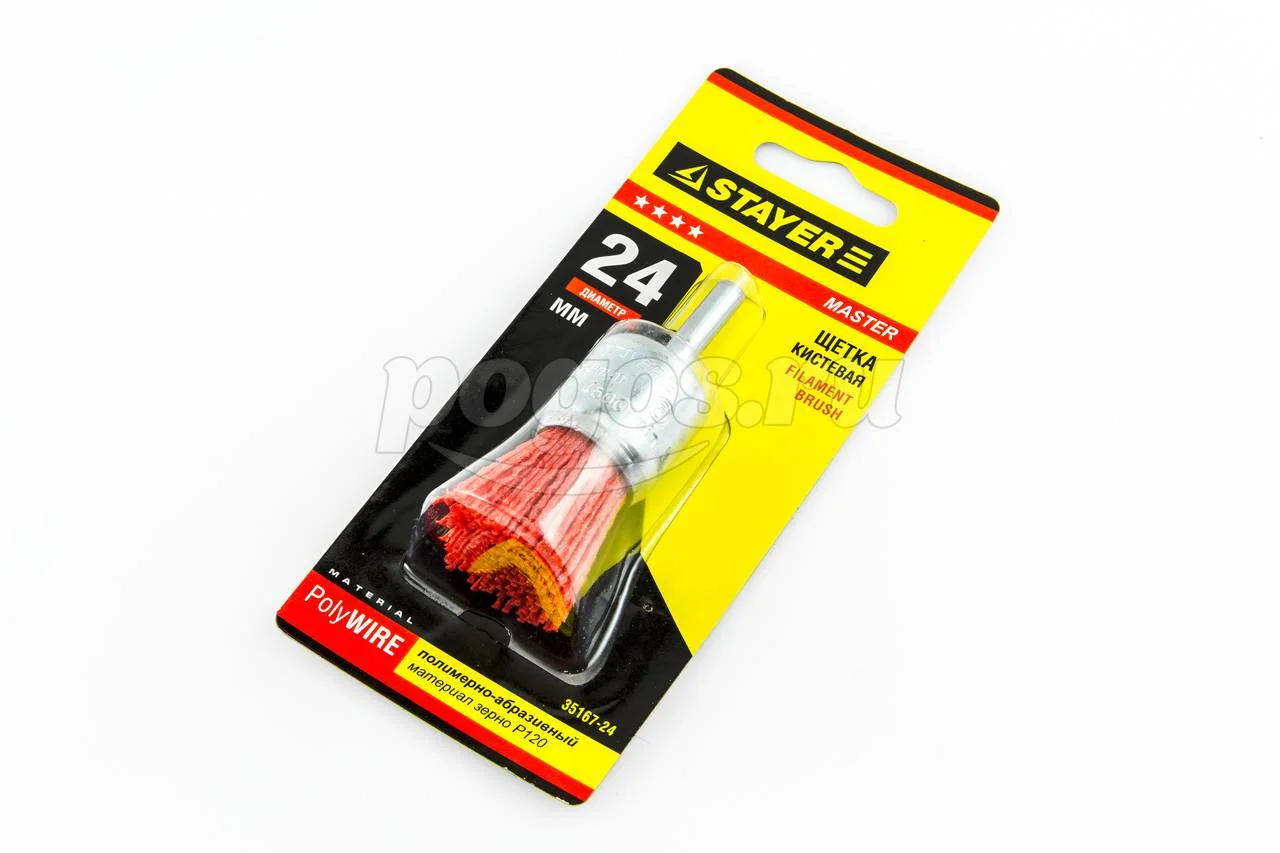 Кистевая щетка STAYER 35167-24 полимерно-абразивная с зерном P120, используется совместно с дрелью и предназначена для зачистки поверхностей от лакокрасочных материалов, полировки перед шпаклевочными работами.