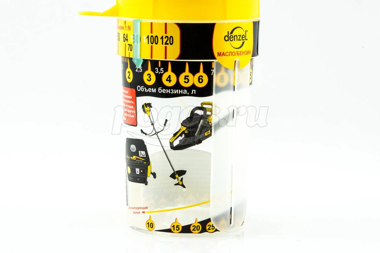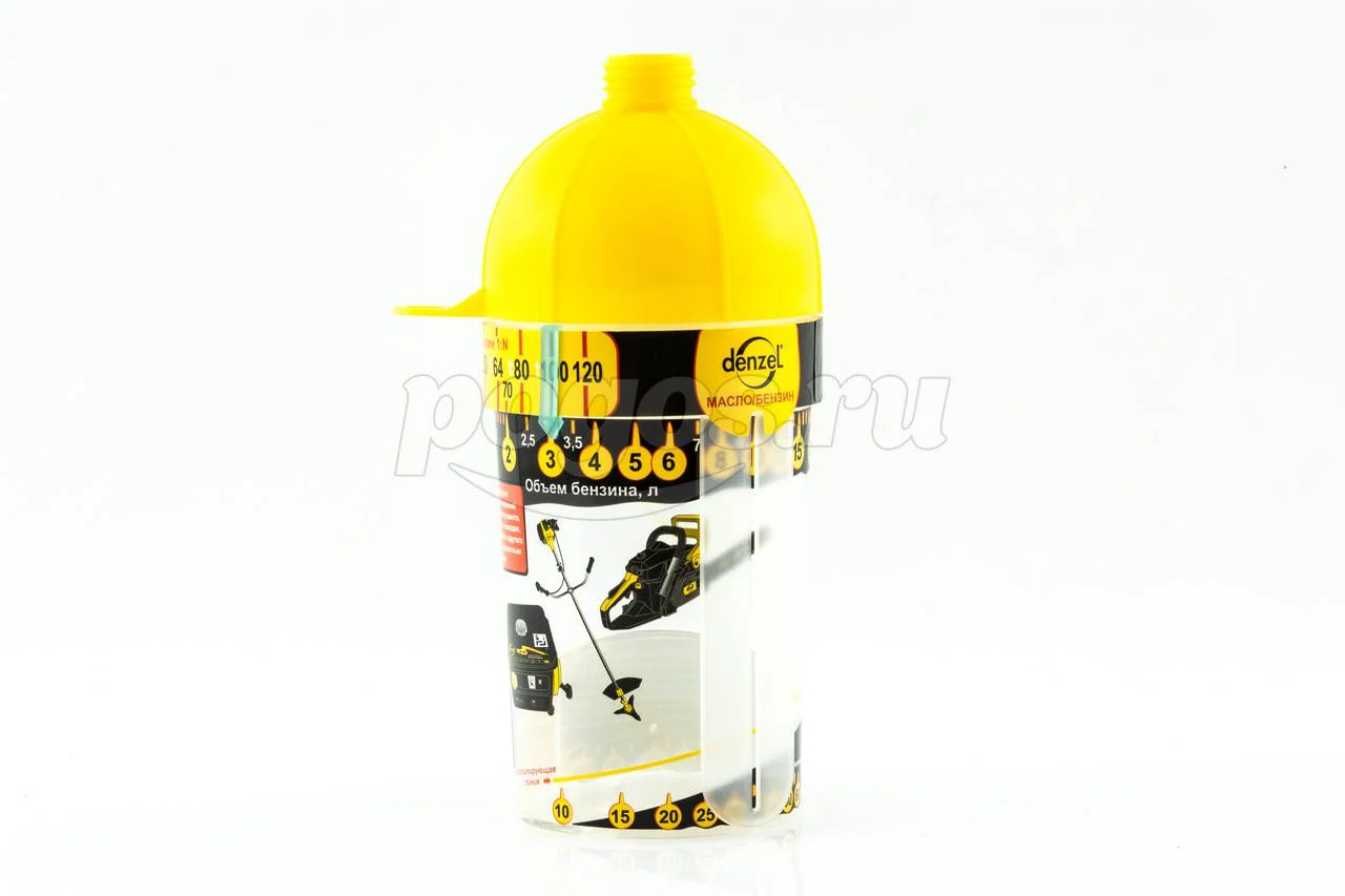 Универсальный дозатор торговой марки DENZEL предназначен для приготовления топливной смеси, необходимой для заправки бензоинструмента.