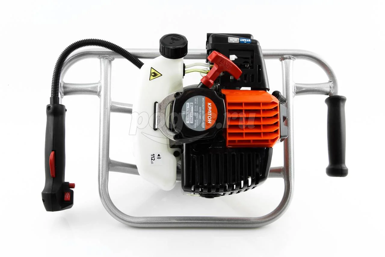 Мотобур бензиновый Кратон GHD-1450 применяют для бурения открытого грунта и льда. GHD-1450 обладает надежной конструкцией рамы, мощным 2-х тактным бензиновым двигателям и рассчитан для работы одним человеком.