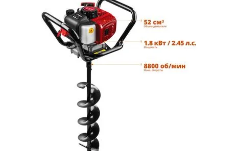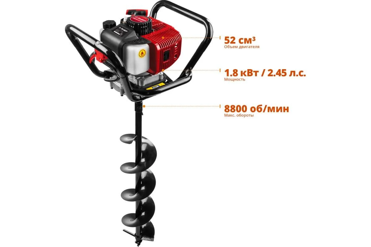 Мотобур со шнеком Зубр МБ1-200 Н - простой и надежный инструмент для бурения скважин в грунте или льде. Имеет антивибрационную систему. Быстросъемное соединение шнека позволяет легко адаптировать бур под решение разного вида задач. Система воздушного охлаждения обеспечивает защиту двигателя от перегрева.