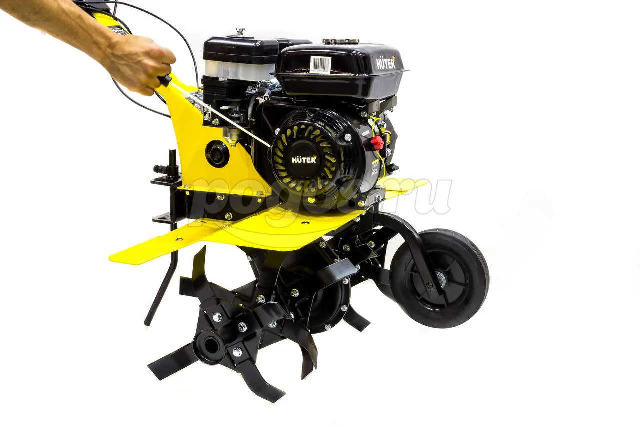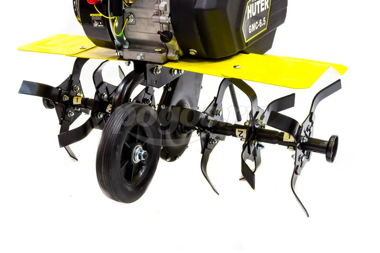 Мотокультиватор HUTER GMC-6.5 оснащен бензиновым, четырехтактным, одноцилиндровым двигателем мощностью 6.5 л/с. Данный аппарат предназначен для культивации и обработки земель площадью до 1000 м3.