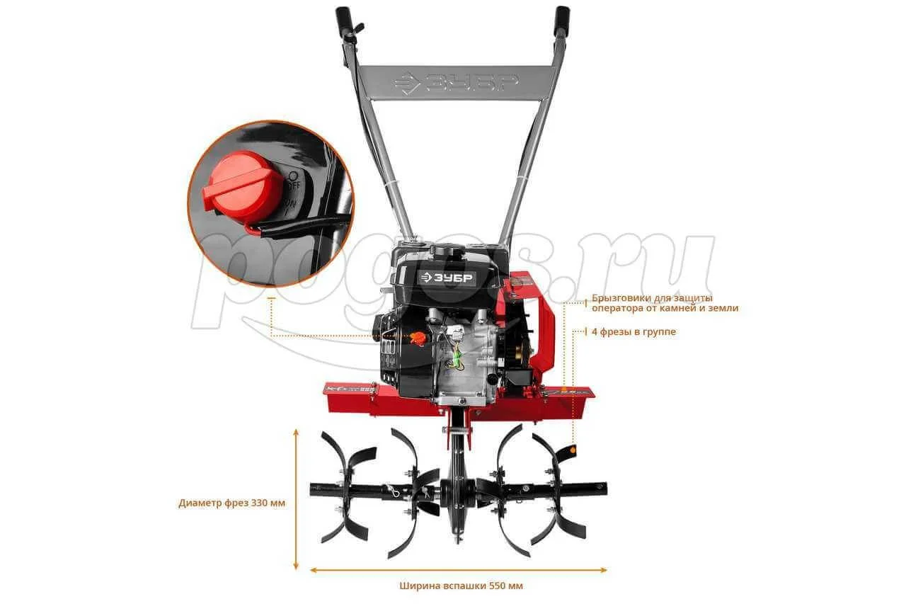 Мотокультиватор 6,5л/с глубина 33см ширина 55см ЗУБР