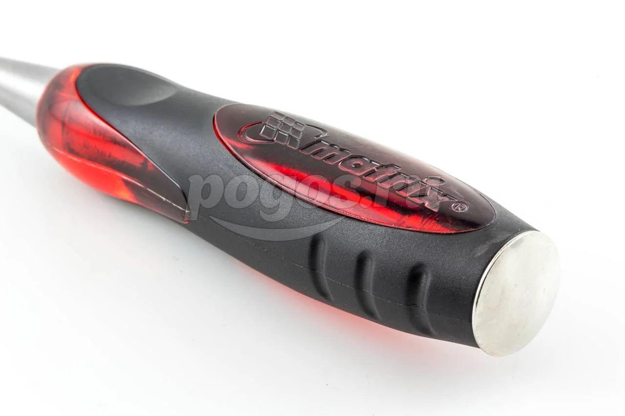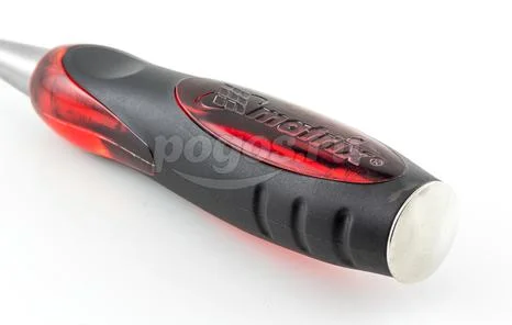 Имеет металлический затыльник и сквозной стержень, что позволяет наносить по инструменту удары молотком.
