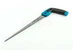 Зубья ножовки имеют трехгранную заточку, что позволяет работать максимально качественно и с высокой скоростью.