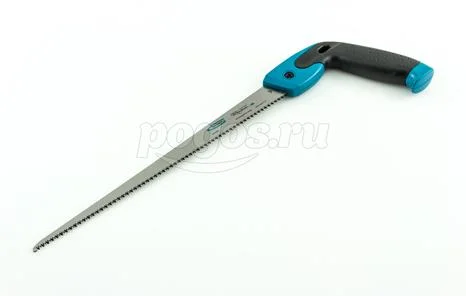 Двухкомпонентная рукоятка ножовки изготовлена из ударопрочного пластика, а эргономичная форма делает ее комфортной для рук даже при интенсивном пилении.
