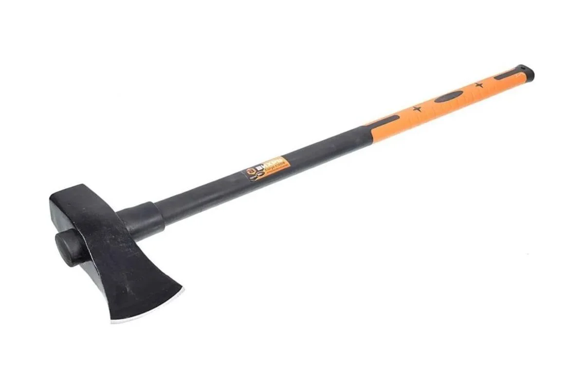 Колун оснащён лезвием из высококачественной стали марки 65Г с закалкой до твердости 50 HRC, что позволяет надолго сохранять остроту и обеспечивать надёжное разделение древесины. Рукоятка из фибергласса с обрезиненным покрытием длиной 900 мм гарантирует удобный хват и снижает вибрации для комфортной и безопасной работы.