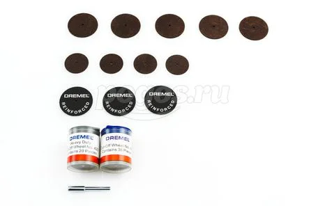 Набор оснастки для резки Dremel 26150688JA содержит насадки для резки металла, древесины или пластмассы с помощью гравера.