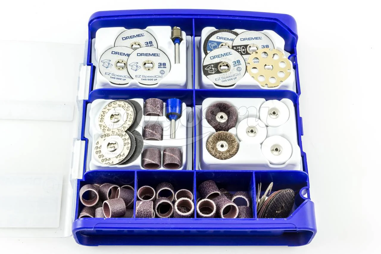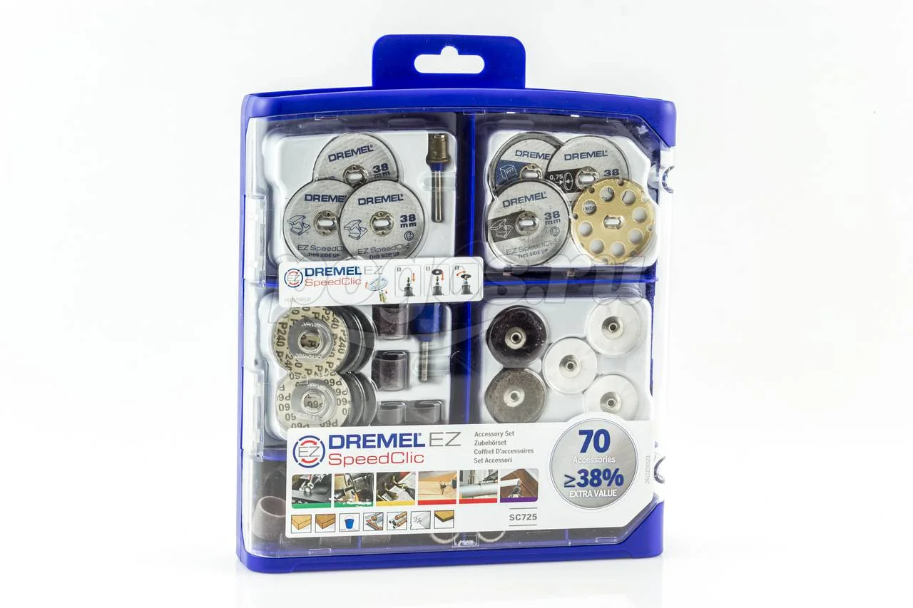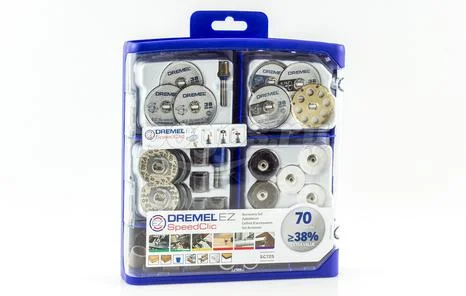 Набор оснастки EZ SpeedClic (70 шт.) Dremel 2615E725JA содержит различные насадки с системой EZ SpeedClic, которая обеспечивает легкую и быструю замену оснастки без использования ключа.