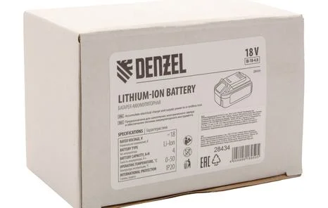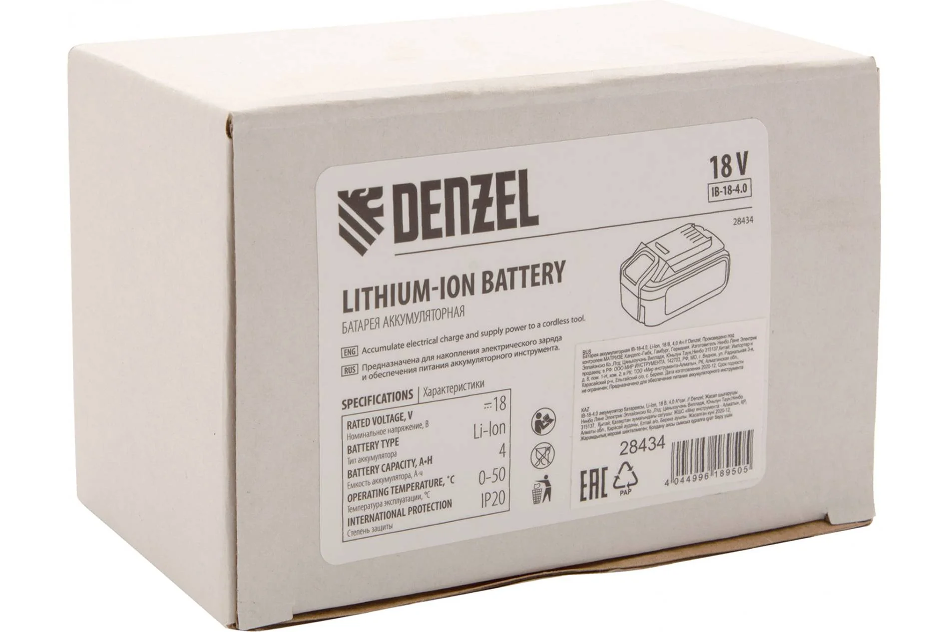 Батарея аккумуляторная IB-18-4.0 (4.0 Ач; 18 В; Li-Ion) Denzel 28434, артикул: 28434