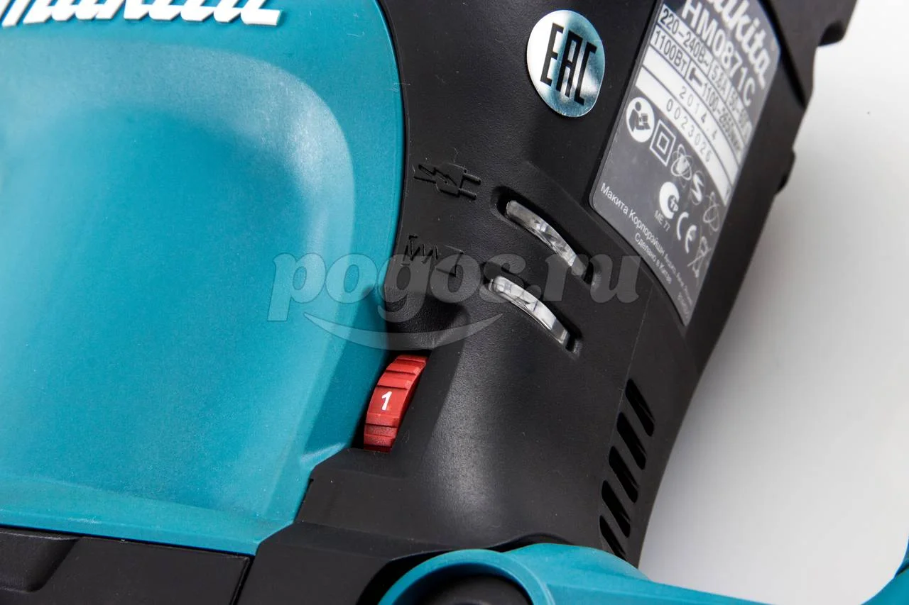Отбойный молоток Makita HM0871C с двигателем мощностью 1100 Вт обеспечивает эффективное долбление с частотой удара до 2650 ед./мин.