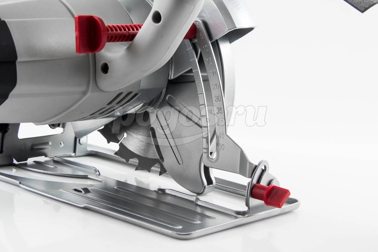 Наклон основания и глубина пропила настраиваются без дополнительных инструментов. Выставить точное значение помогут градусные шкалы на корпусе.