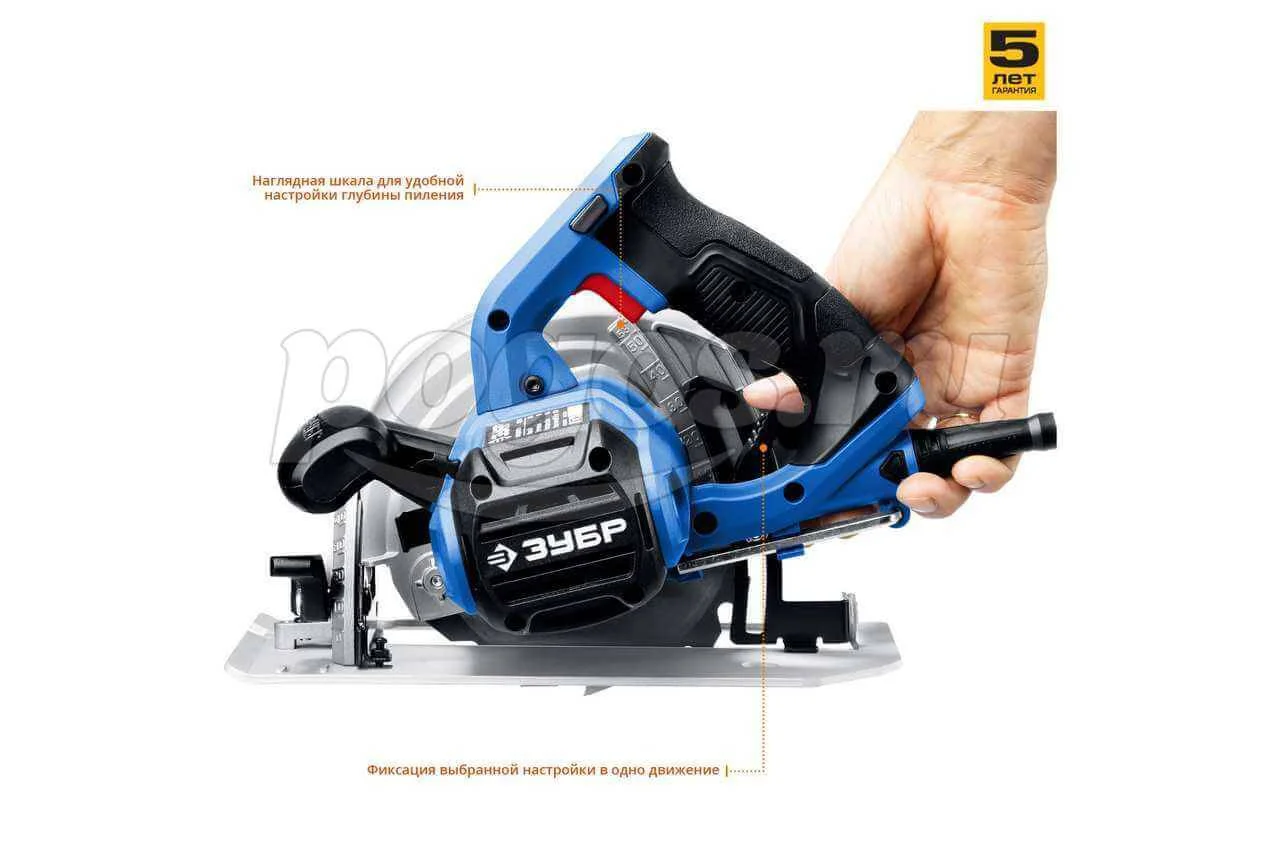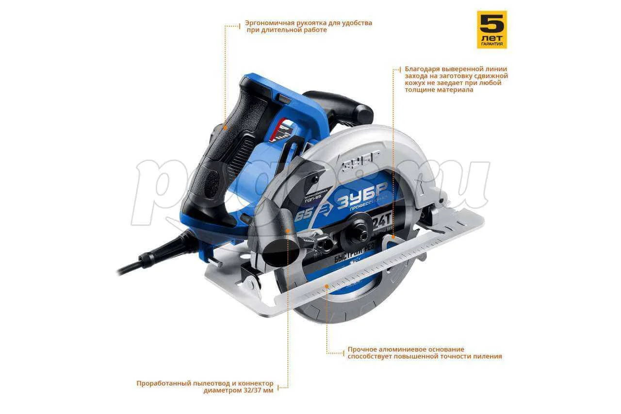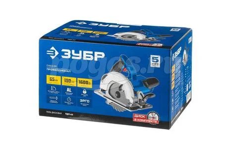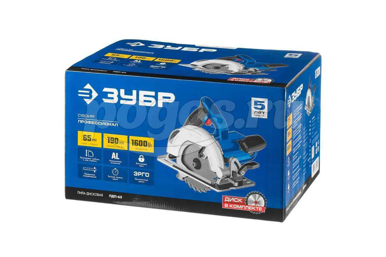 Пила циркулярная сетевая 1600Вт 5000об/мин 190*30мм ПРОФ ЗУБР, артикул: ПДП-65
