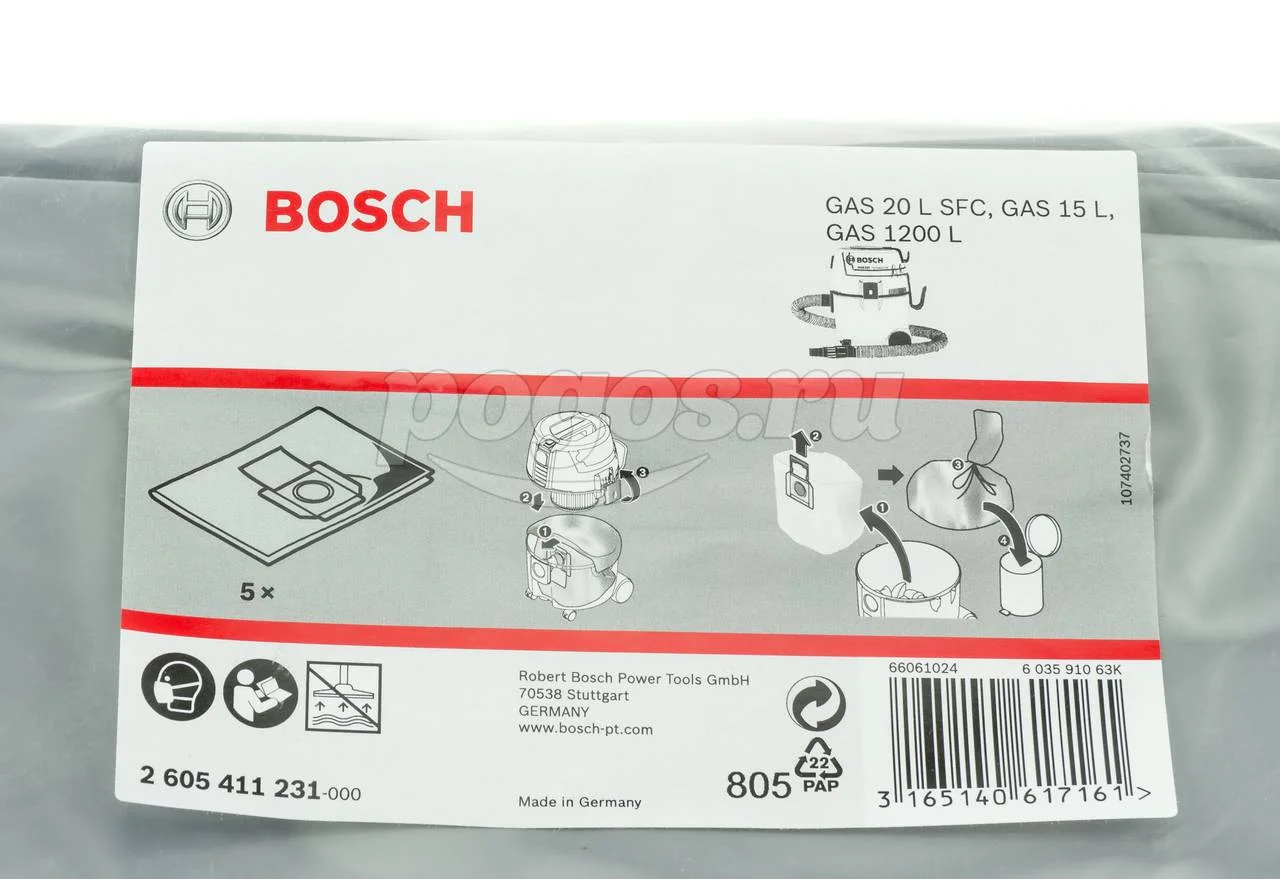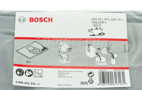 Мешок Bosch 2.605.411.231 используется в пылесосе GAS 15.