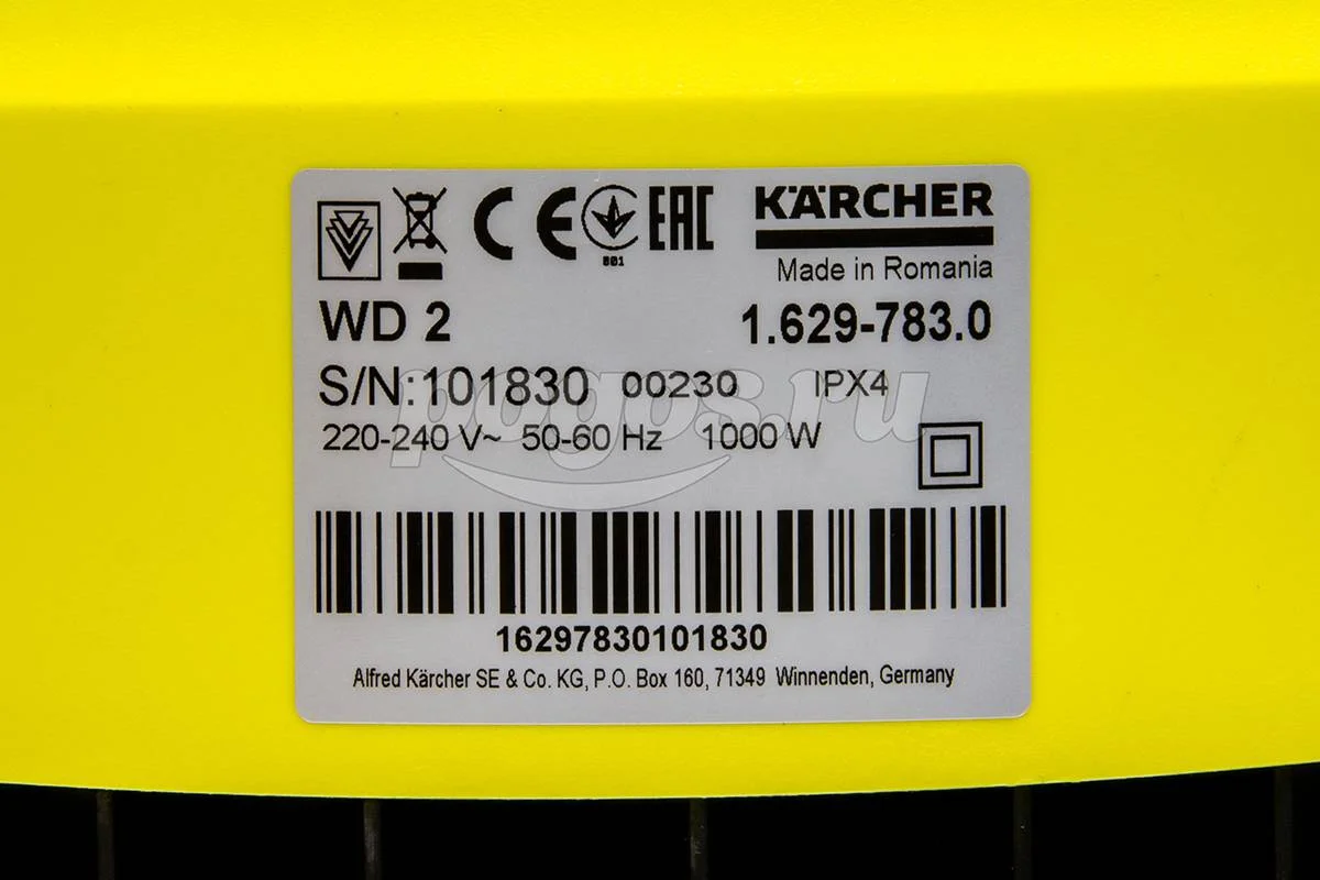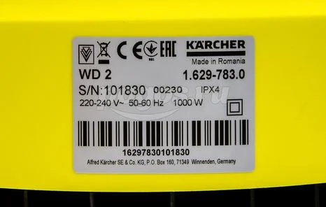Пылесос 1000Вт 12л сухая уборка WD 2 *EU-I KARCHER , артикул: 1.629-783.0