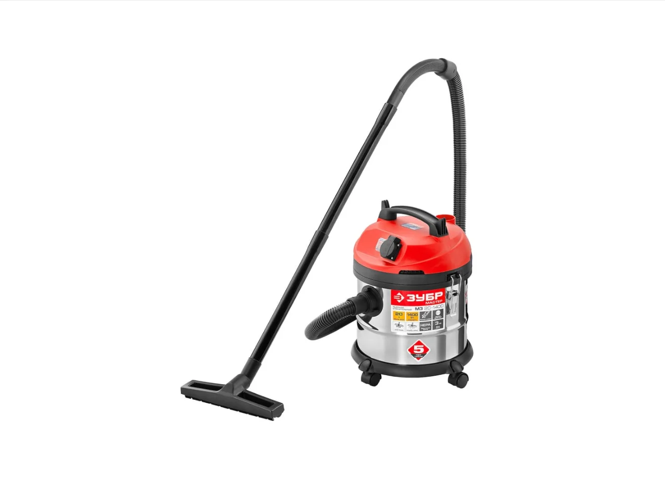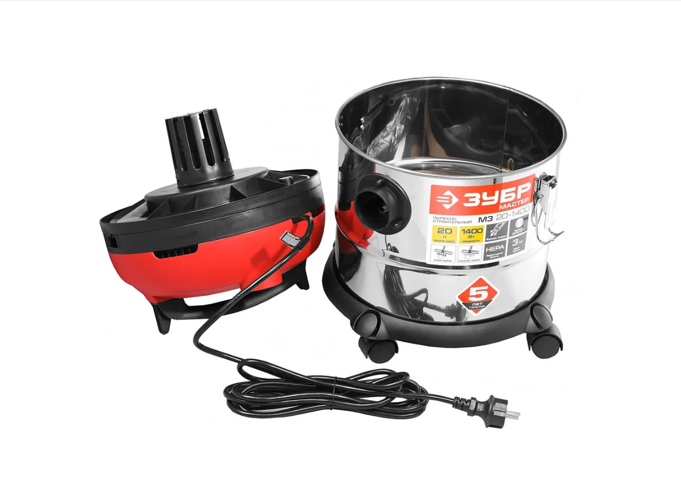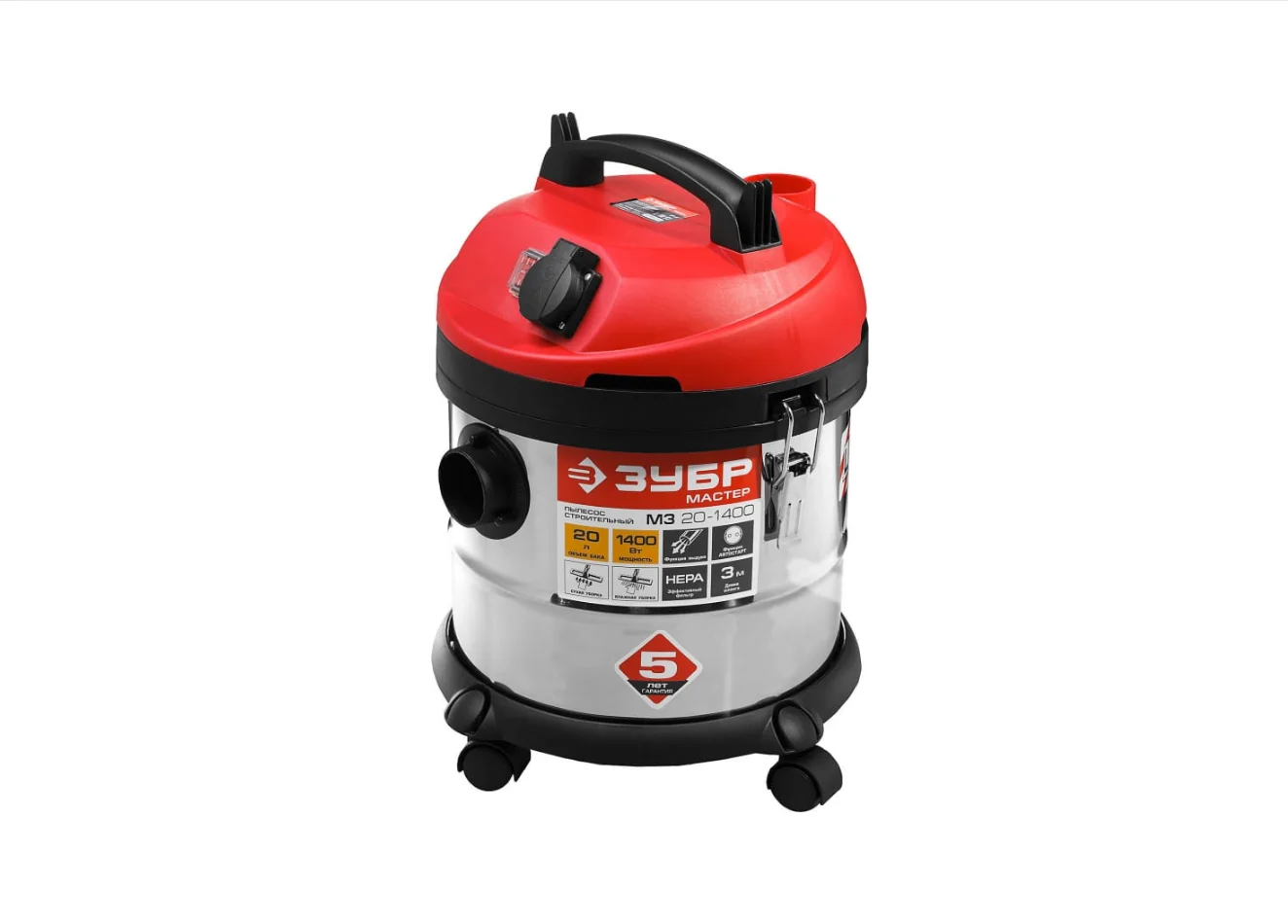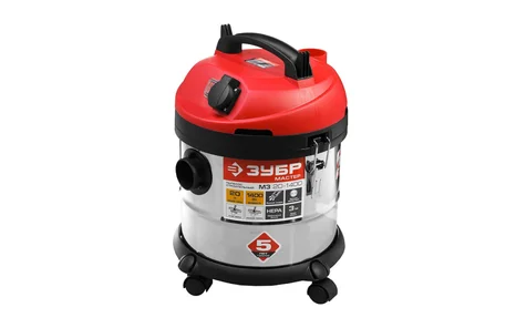 Строительный пылесос ЗУБР МАСТЕР М3-20 ПУ-20-1400 М3 используется для уборки производственных помещений и строительных площадок. Мощный двигатель 1400 Вт обеспечивает отличную производительность и большую силу всасывания. Благодаря наличию встроенной розетки к пылесосу можно подключать электроинструмент мощностью 100-2000 Вт. Корпус бака сделан из нержавеющей стали, что гарантирует долгий срок службы и устойчивость к коррозии.