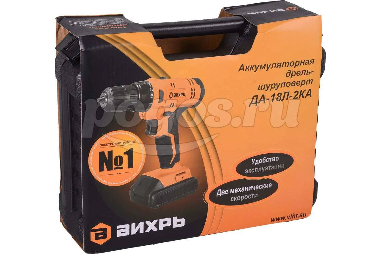Шуруповерт аккумуляторный 18В 2*1,5Ач Li-lon 28Нм кейс ДА-18Л-2К ВИХРЬ, артикул: 72/14/25