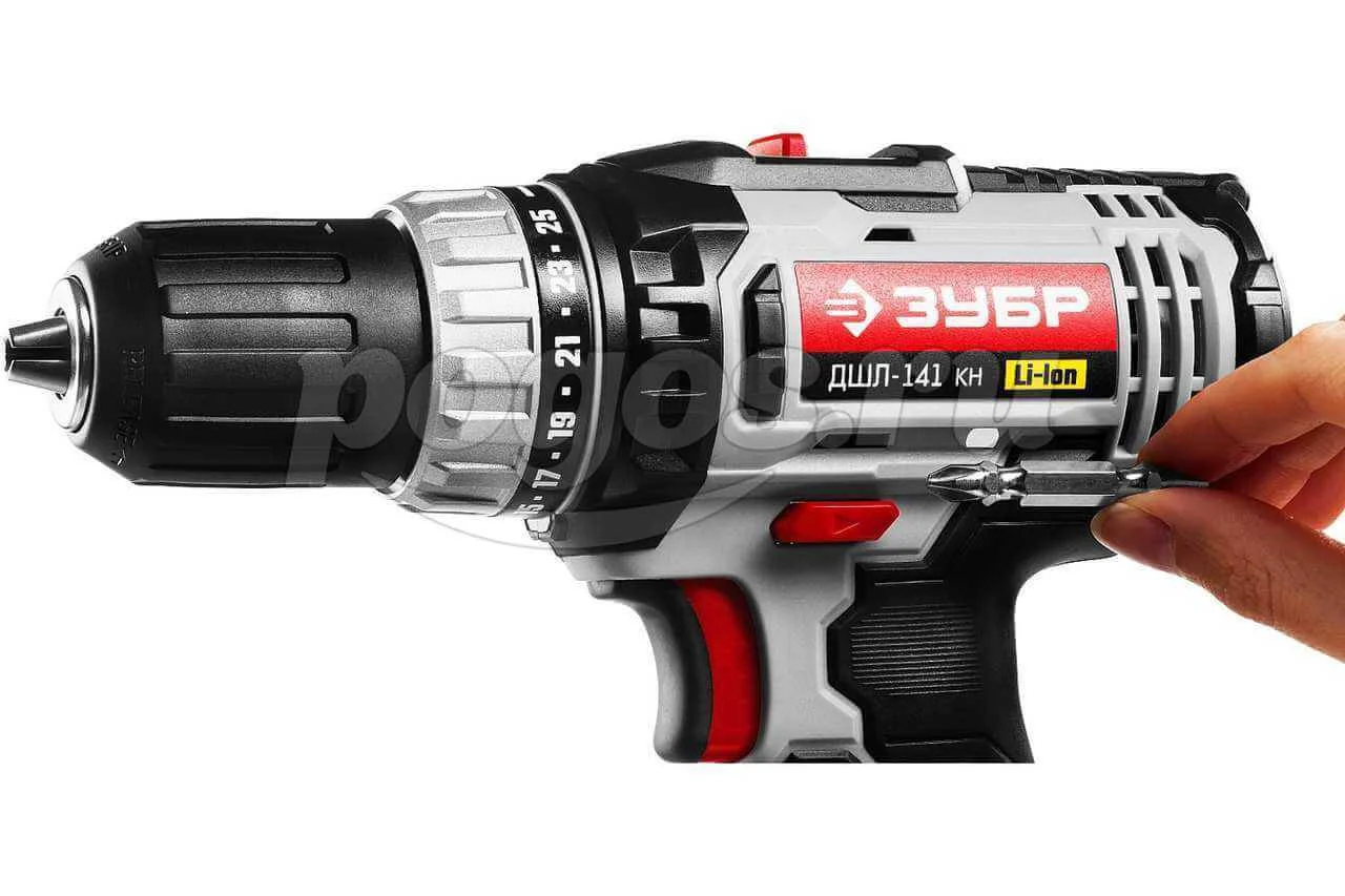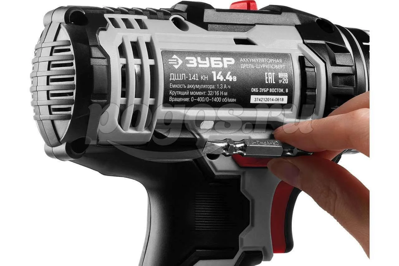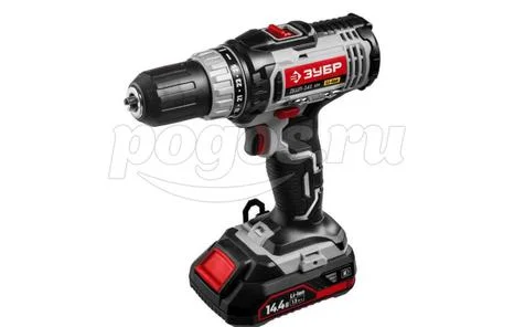 Шуруповерт акк 14,0В 1400об/мин 32Нм 1,3A/ч Li-ion (2акк, ЗУ, кейс) ЗУБР, артикул: ДШЛ-141 КН