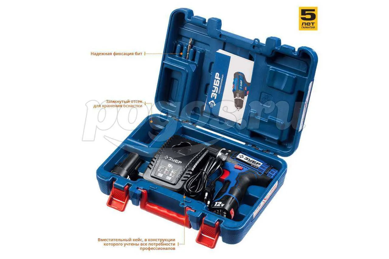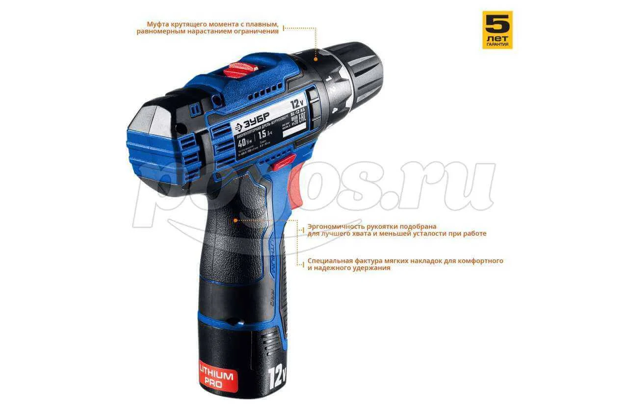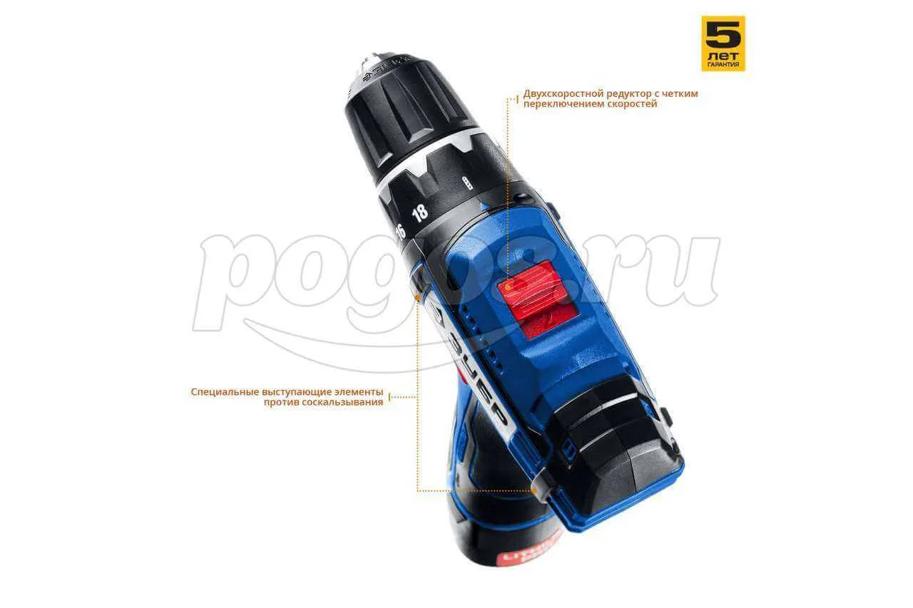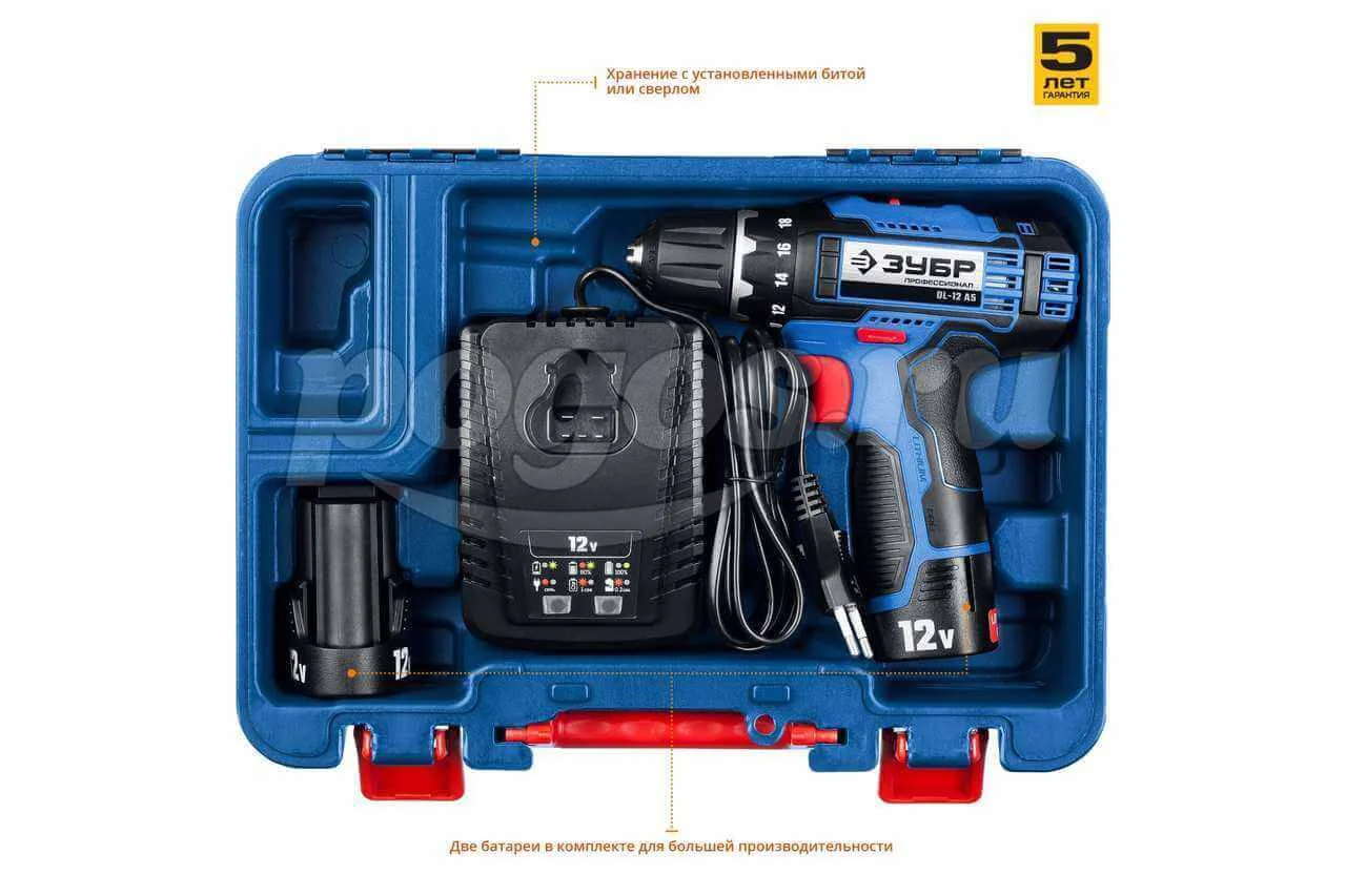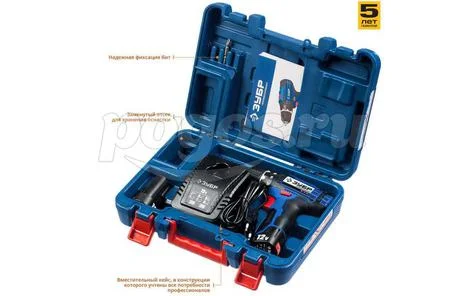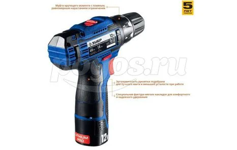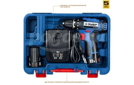 Шуруповерт акк 12,0В 1350об/мин 40Нм 1,5A/ч Li-ion (2акк, ЗУ, кейс) ПРОФ ЗУБР, артикул: DL-12 A5