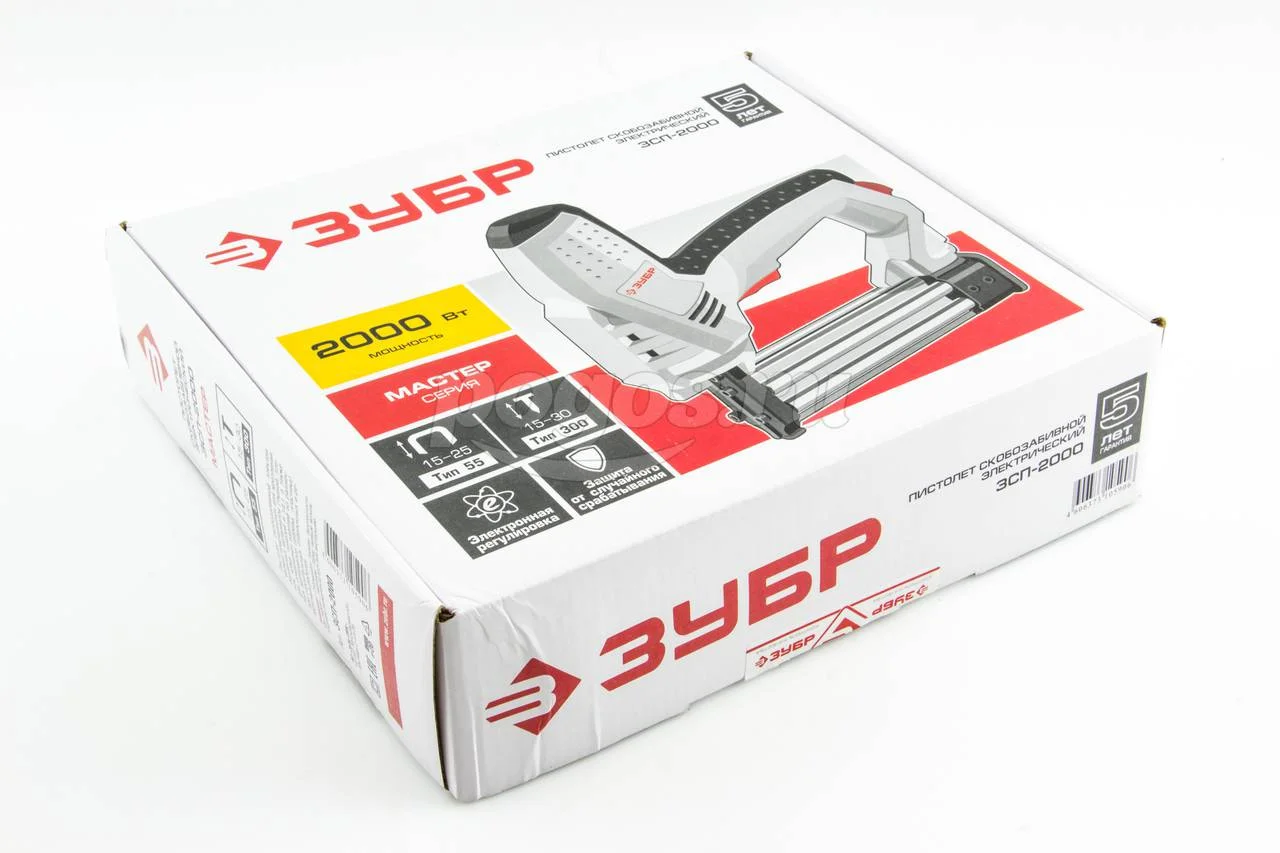 Скобозабивной пистолет ЗУБР ЗСП-2000 предназначен для крепления различных материалов: ткани, пленок, кожи, панелей, дерева, пластика и т.д.