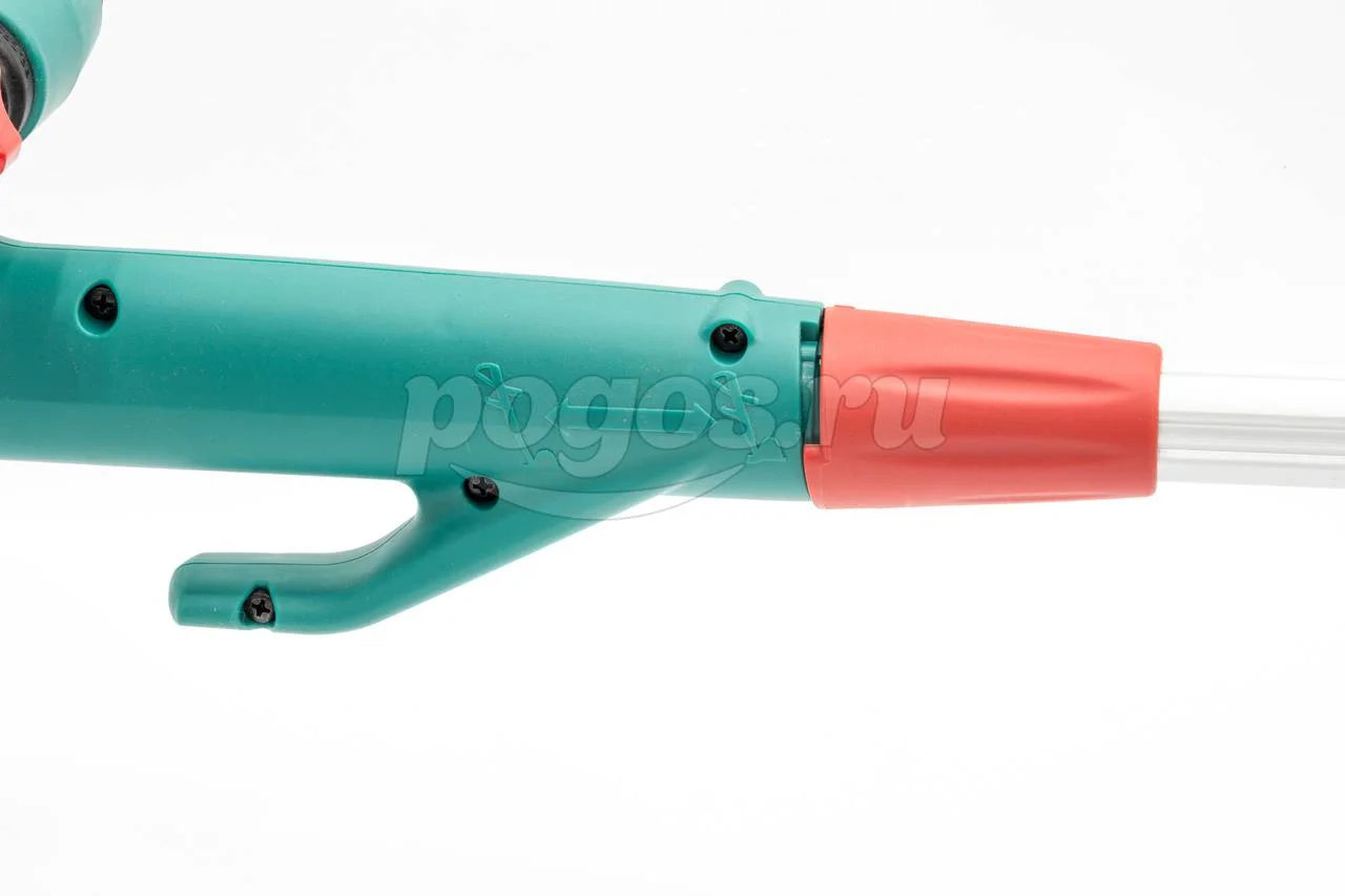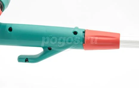 Триммер прямой, ручка D-образная, но вот её расположение по высоте регулировать нельзя. За один проход устройство может обрабатывать участок шириной 30 см.