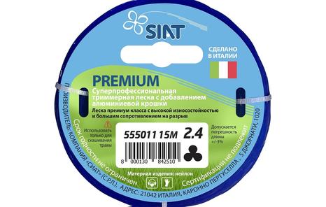 Леска для триммера (Крученый Канат; 2.4 мм; 15 м) Premium SIAT 555011 является режущим материалом и рекомендуется для использования совместно с триммерами для кошения травы.