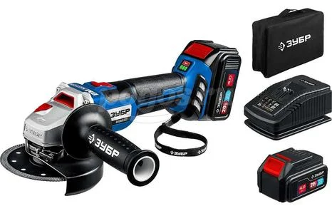 УШМ акк 20В 125мм 10000об/мин Li-ion 4А/ч (2акк, сумка) ЗУБР, артикул: AB-125-42