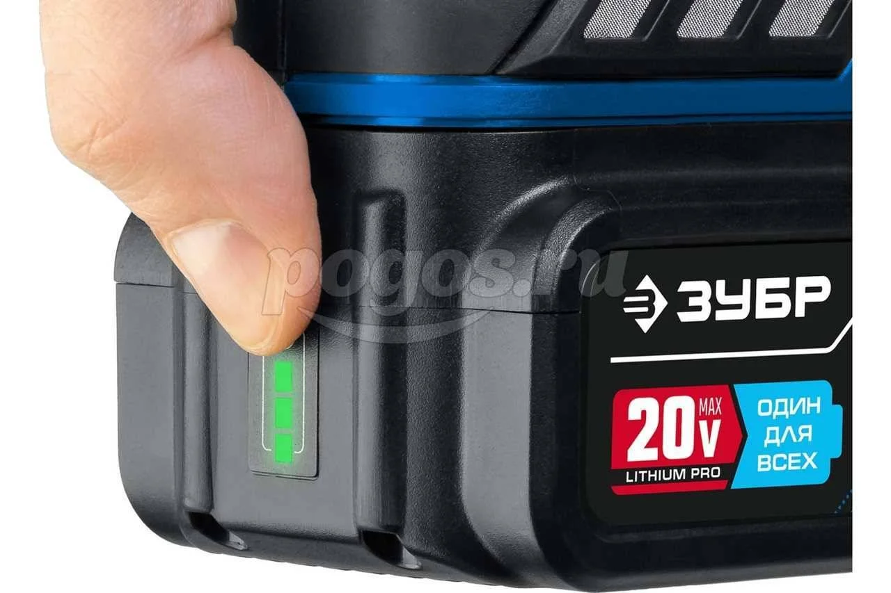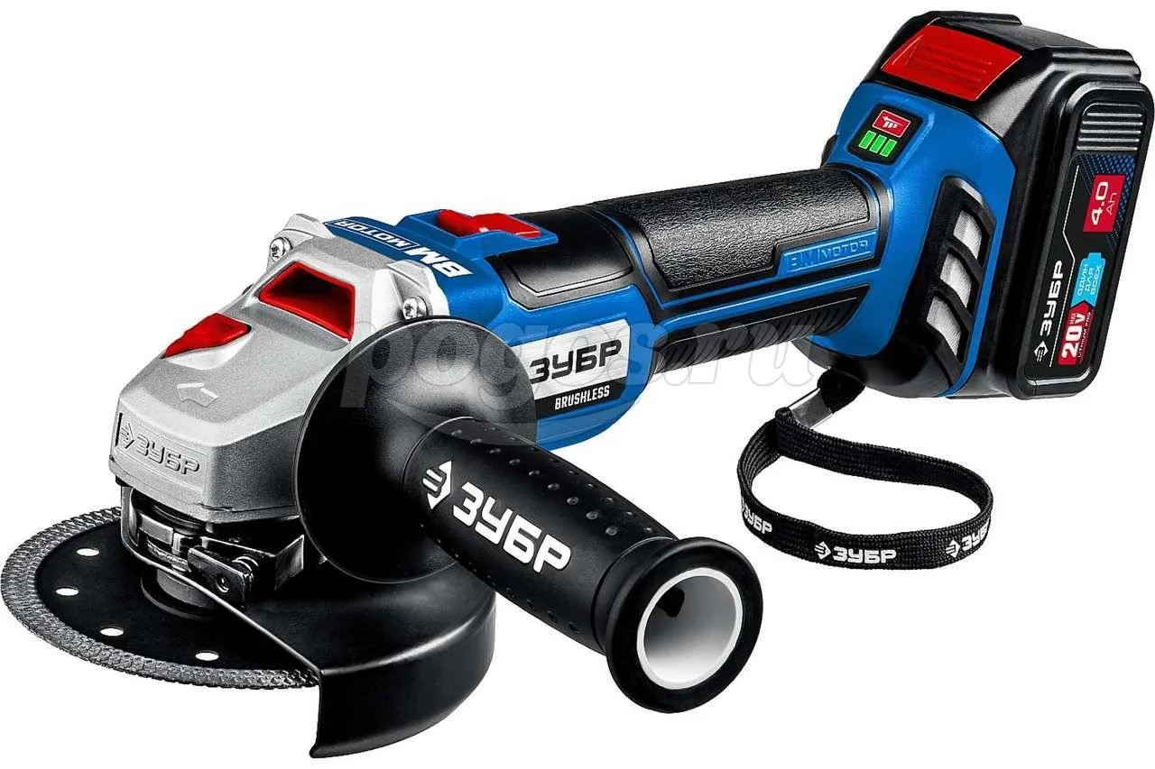 УШМ акк 20В 125мм 10000об/мин Li-ion 4А/ч (2акк, сумка) ЗУБР, артикул: AB-125-42