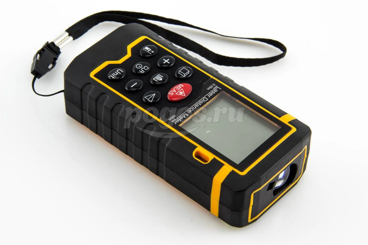 HT-100 электронная рулетка, прибор для определения расстояния до 100 метров. Лазерный дальномер рулетка незаменимый инструмент для строителей и риелторов, позволят быстро и точно определить расстояние, площадь объем, вычисляет высоту по теореме Пифагора, запоминает значения.