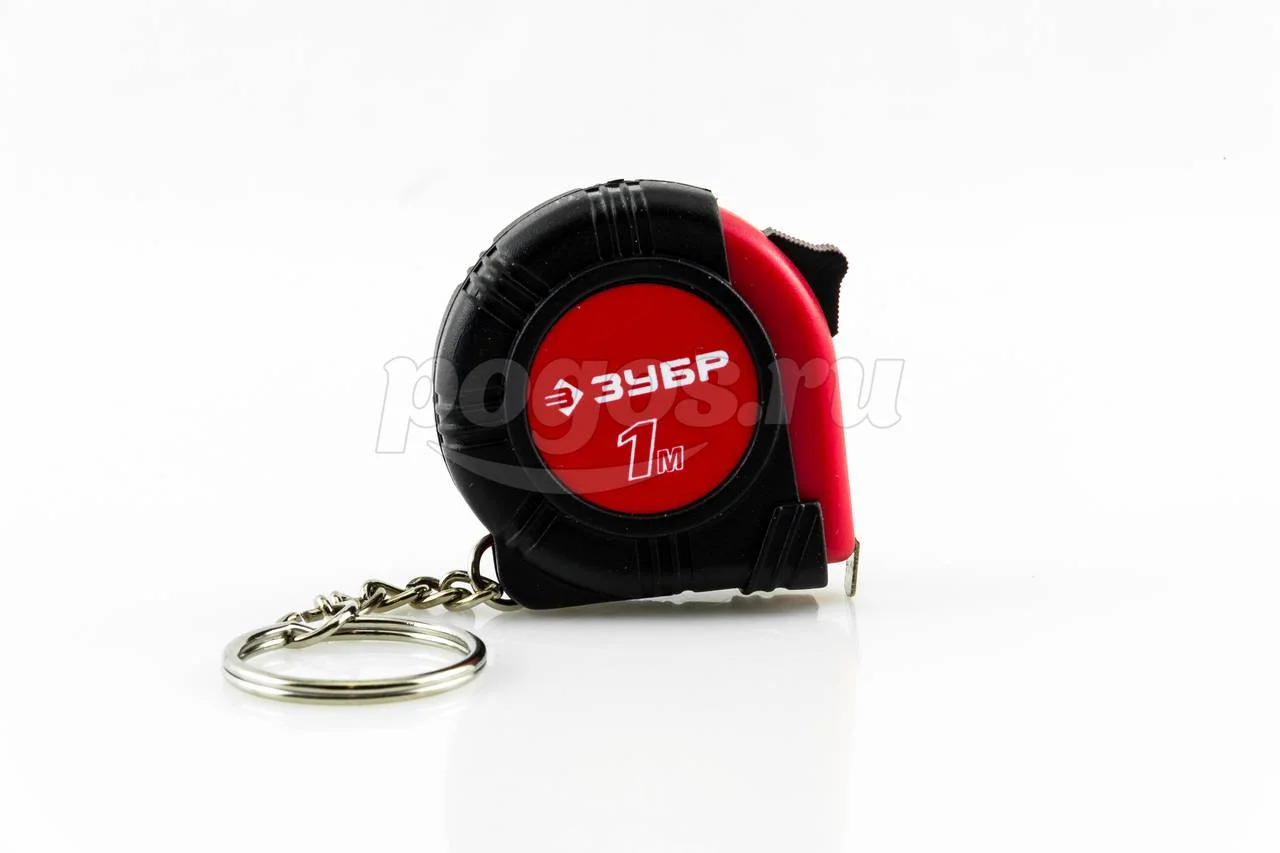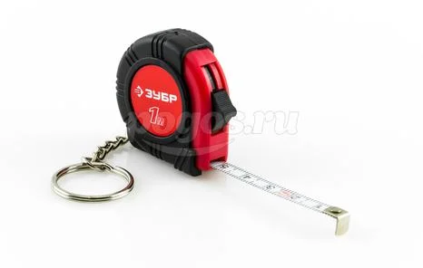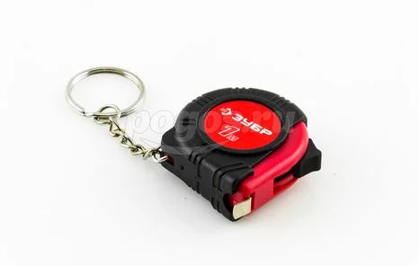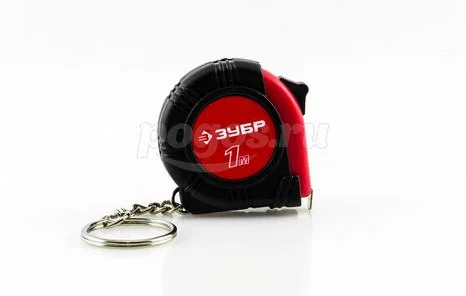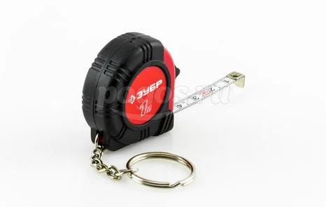 Рулетка-брелок от компании ЗУБР, серия "Мастер". Корпус из упрочненной пластмассы, со встроенным фонариком, на корпус надежно зафиксировано крепление для ношения.