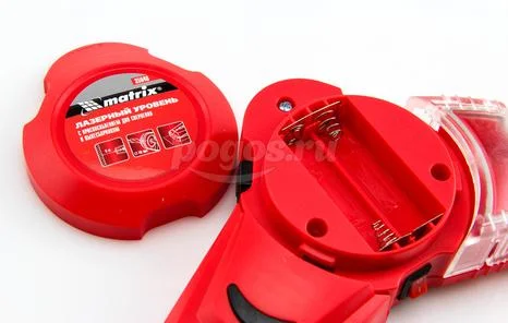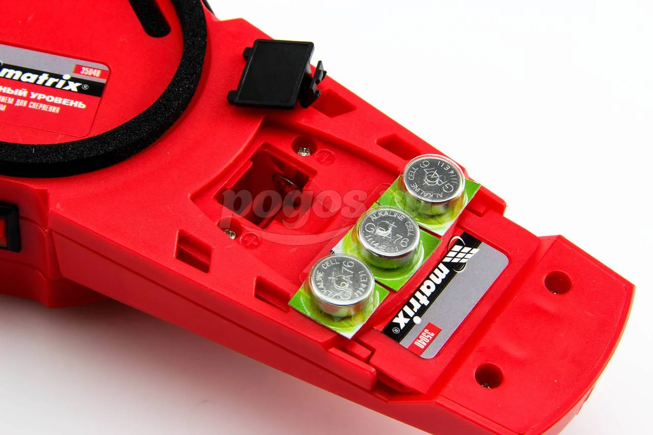 Питание уровня и компрессора осуществляется от батарей АА (2 шт.) и GPA 76 (3 шт). Время работы лазера составляет 1,5 часа, компрессора пылесборника — 50 мин. Корпус инструмента выполнен из ударопрочного пластика.