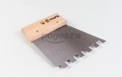 Шпатель предназначен для проведения работ по укладке плитки или по нанесению рисунка на рельефную штукатурку.