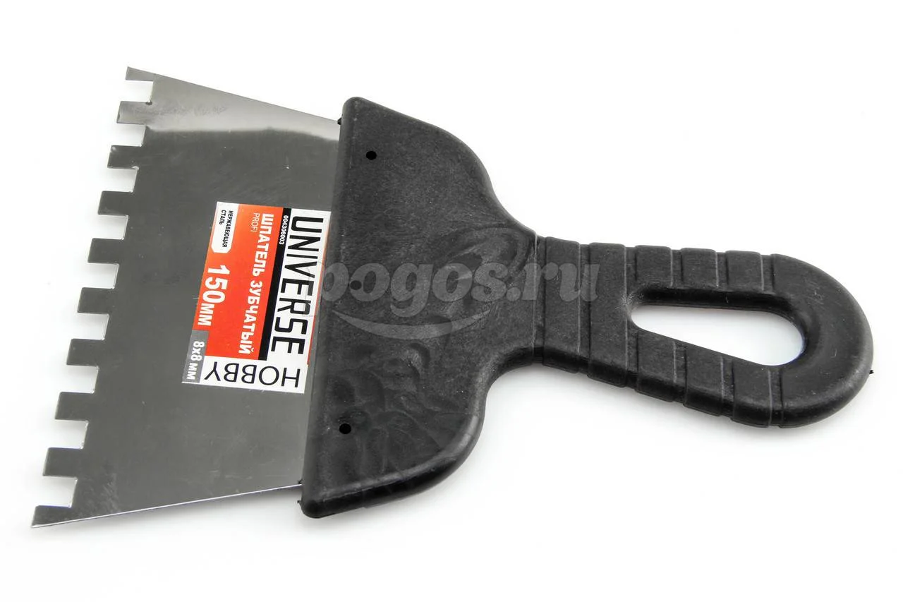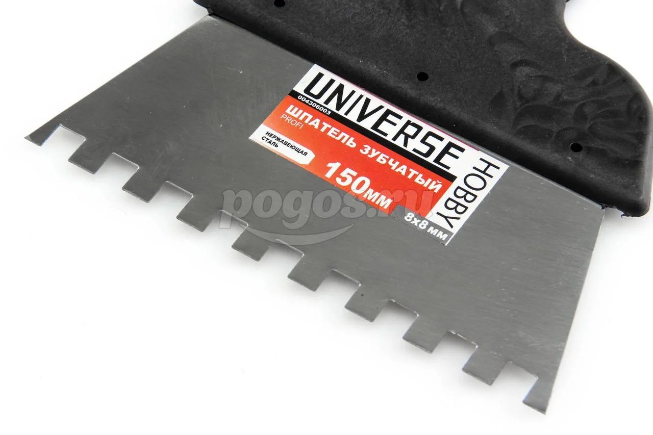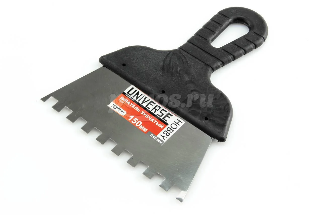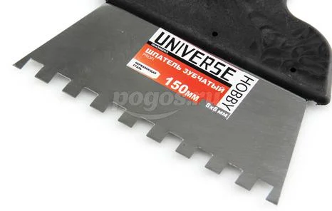 Шпатель 150мм, зуб 8х8мм, нерж. сталь, пластик.ручка UNIVERSE, артикул: 004306003