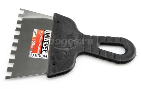 Используется для нанесения и выравнивания на большие поверхности клеевых растворов, а также иных отделочных материалов с образованием борозд.