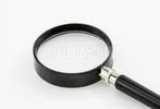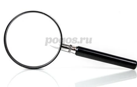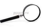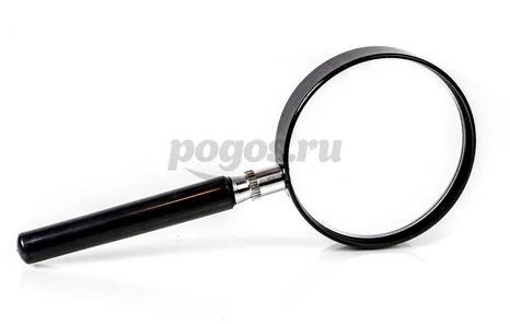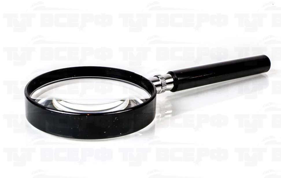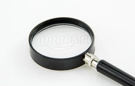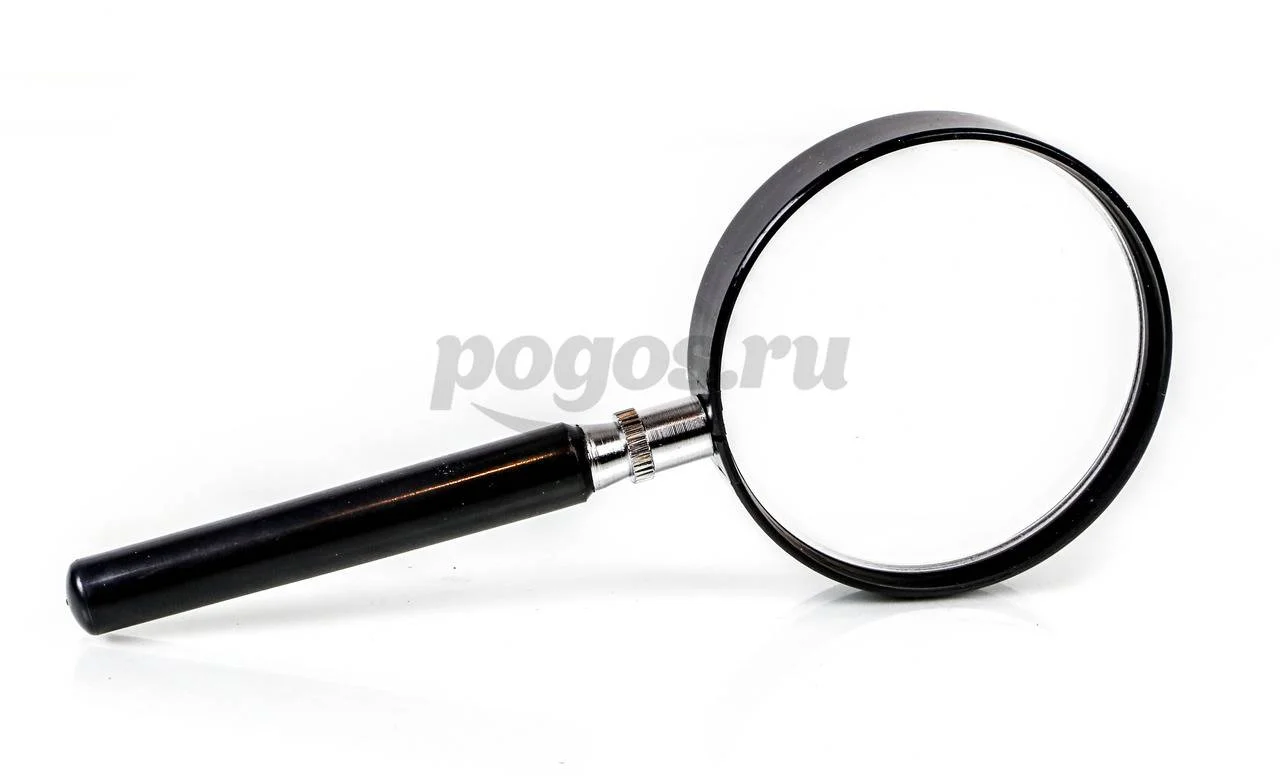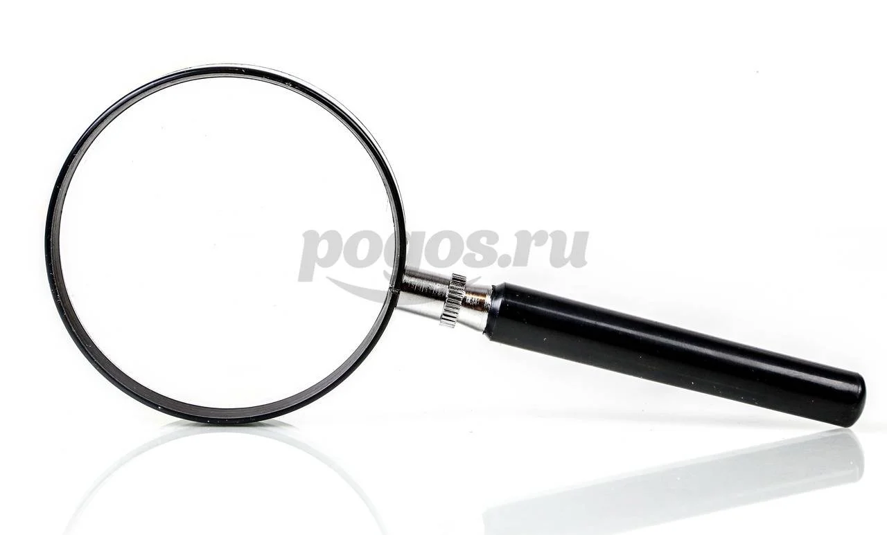 Классическая лупа в металлической оправе с пластиковой ручкой.