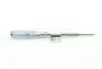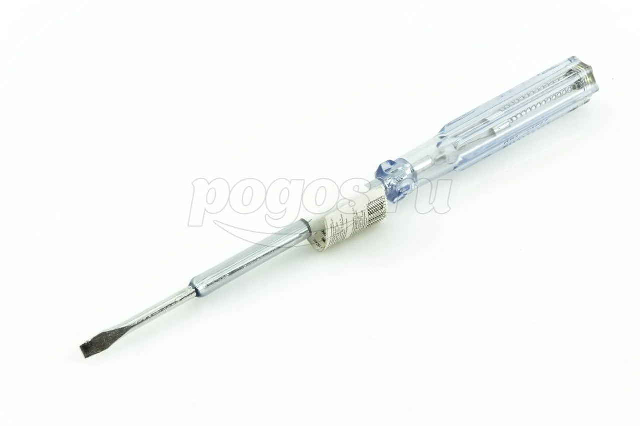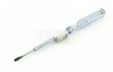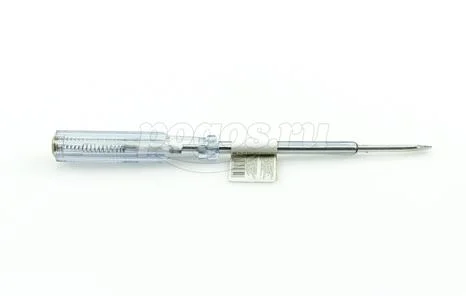 Электрический пробник 180 мм, 100–500 В SPARTA 130605 представляет из себя отвертку с изоляционным покрытием, на конце которой расположен стальной стержень с прямым жалом.