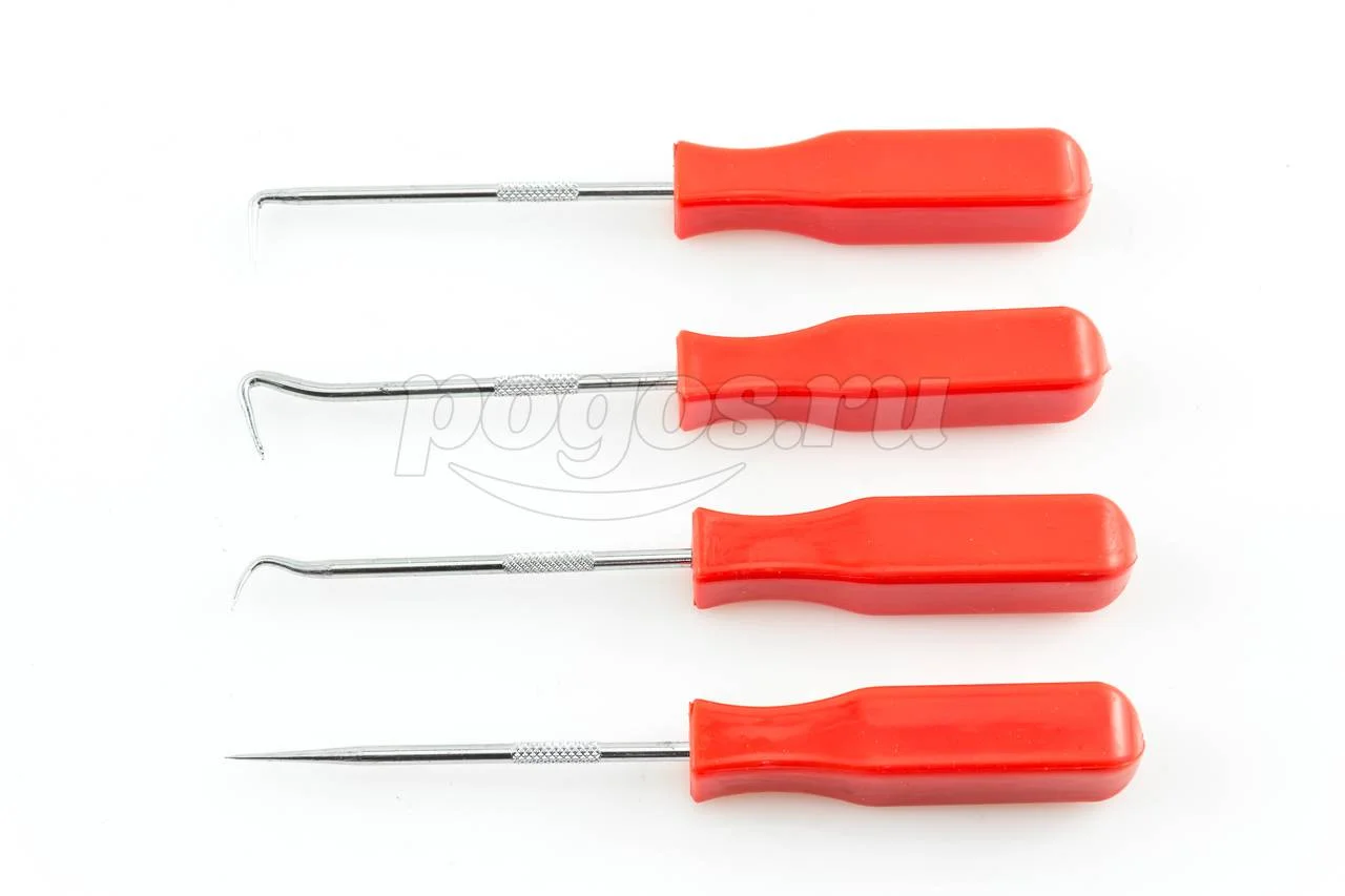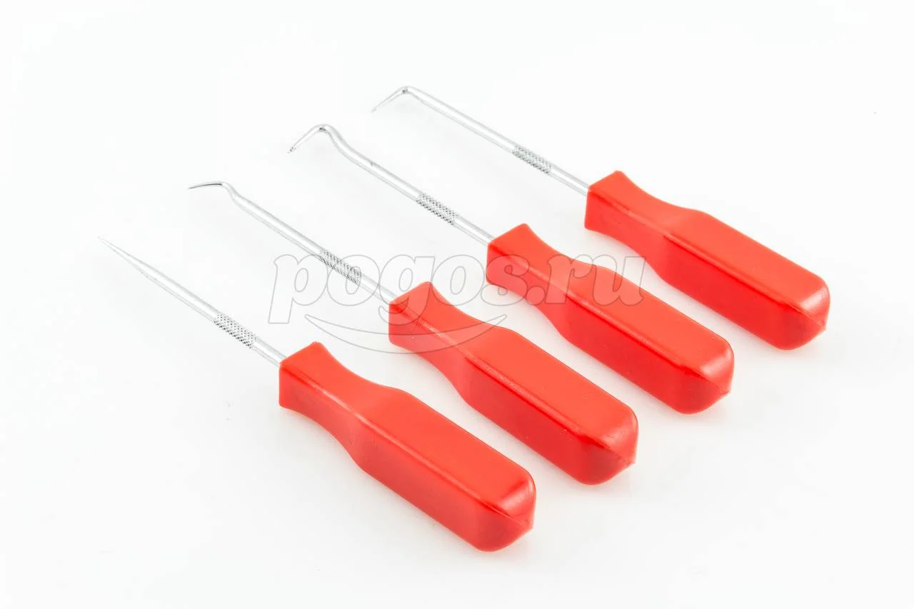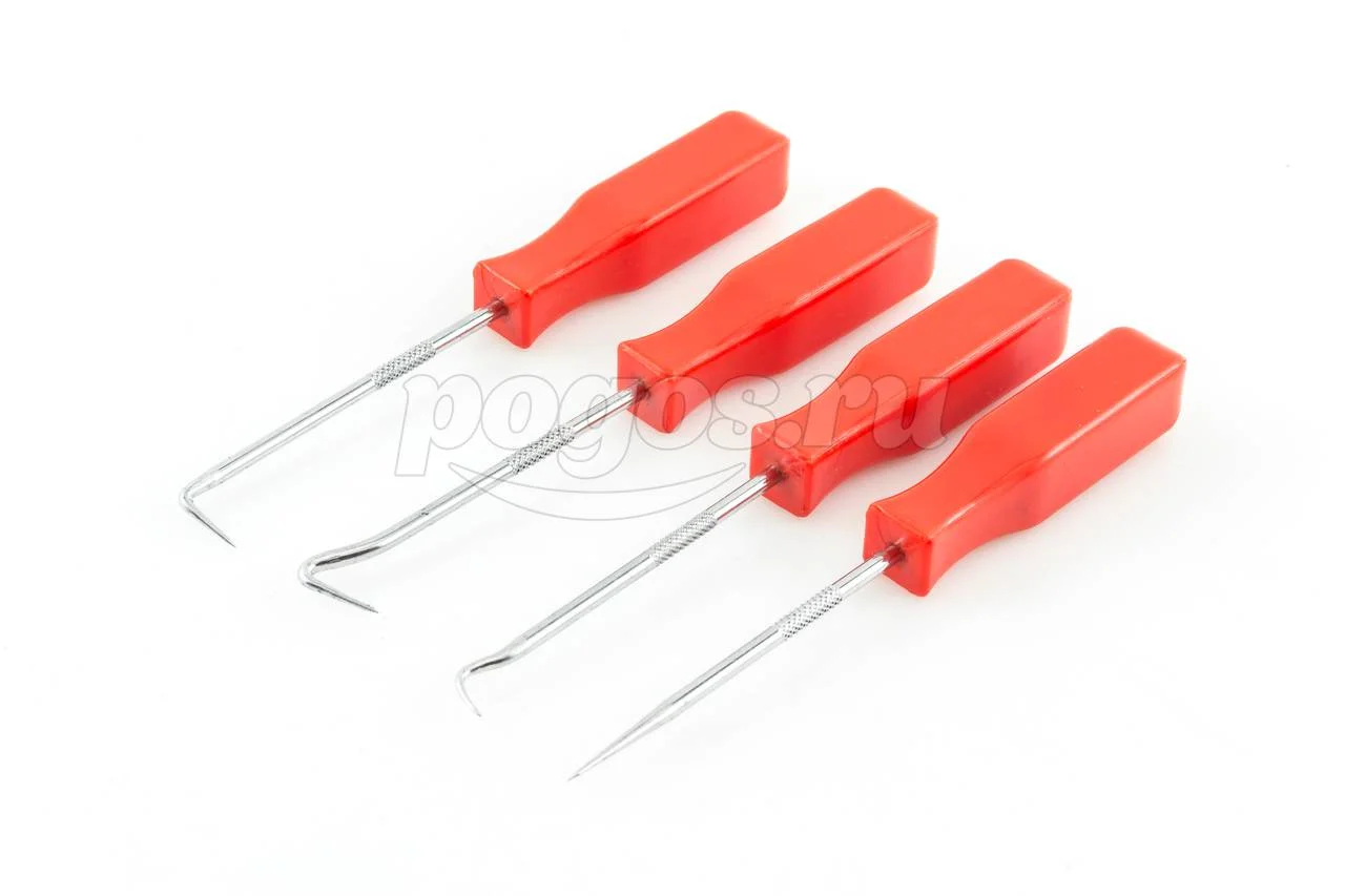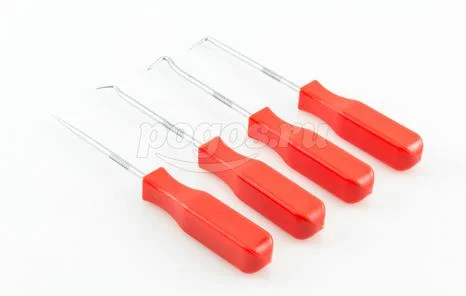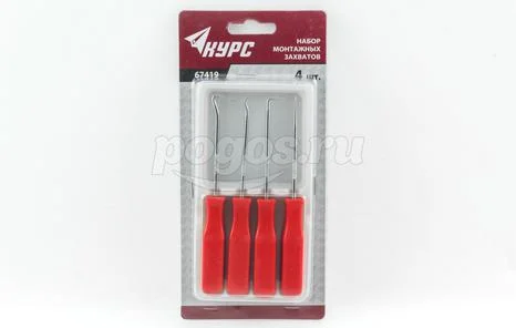 Набор монтажных захватов 4 шт КУРС 67419 состоит из инструментов, использующихся для разделения проводов, съема уплотнительных колец и работ в труднодоступных местах.