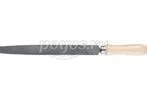Ширина плоской части напильника уменьшается от середины к носу. Напильник изготовлен из углеродистой стали.