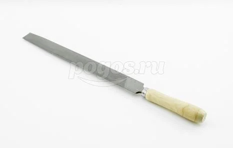 Поставляется в комплекте с деревянной рукояткой, которая покрыта бесцветным лаком, защищающим древесину от высыхания и набухания.