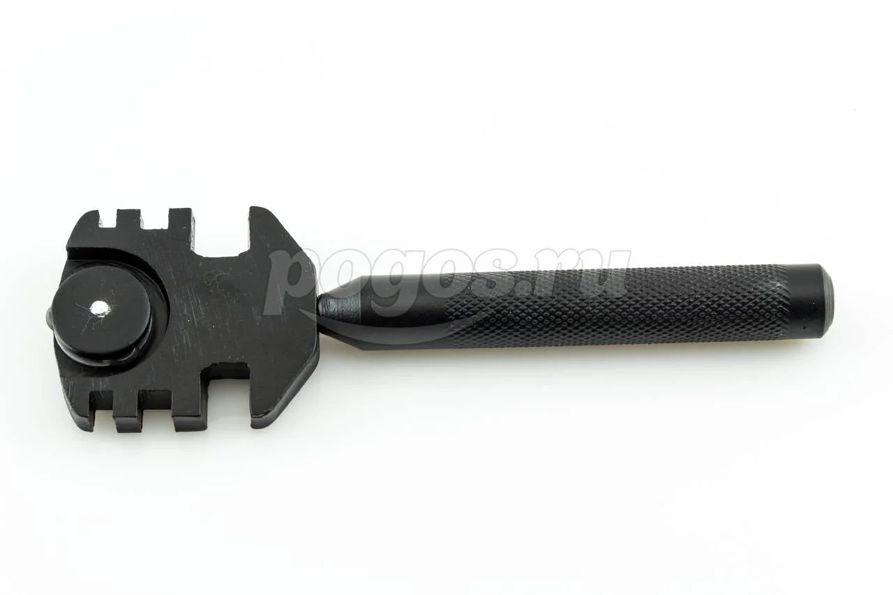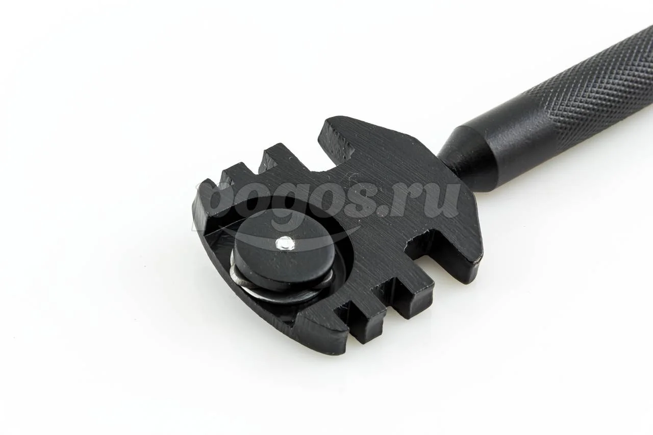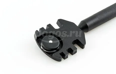 Металлическая головка имеет шесть специальных пазов размерами 3, 4, 5, 6, 8, 10 мм для ломки стекла.