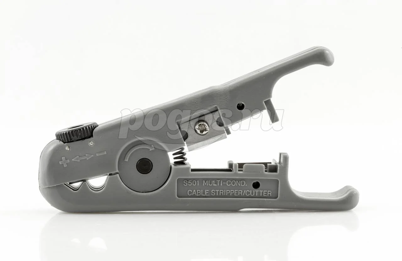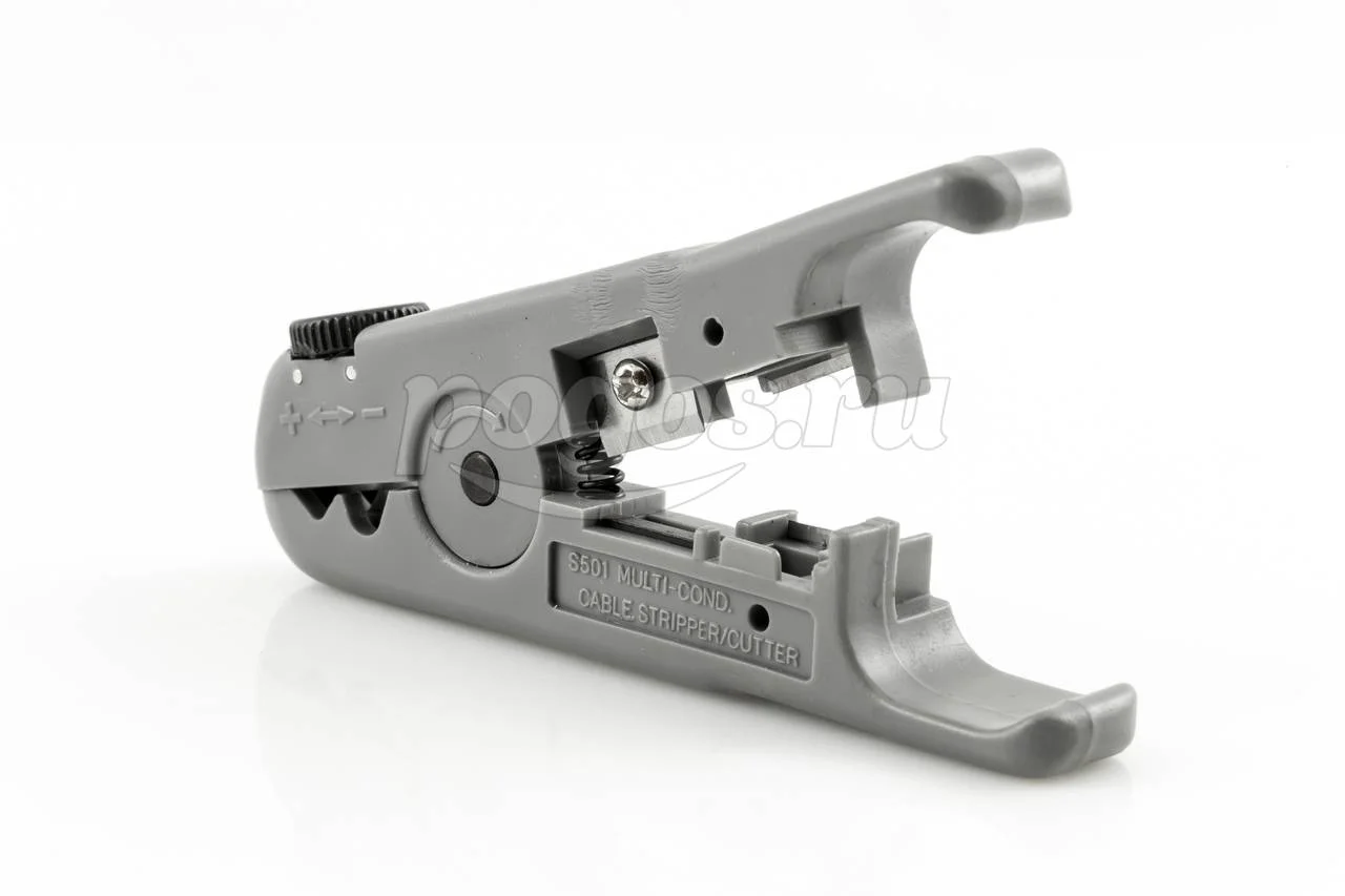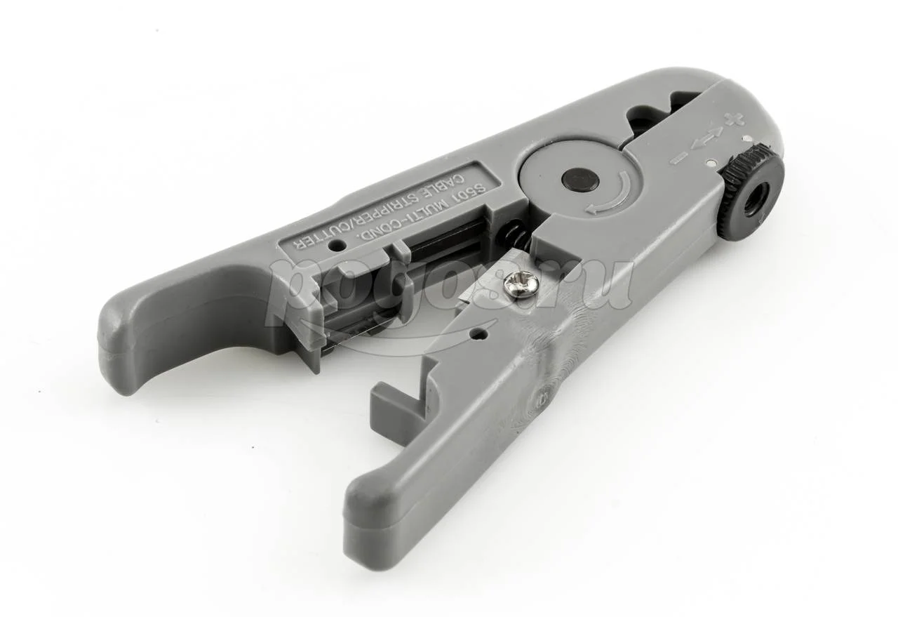 Инструмент снабжается сменными ножами, с помощью которых можно снимать внешнюю оболочку с проводников.