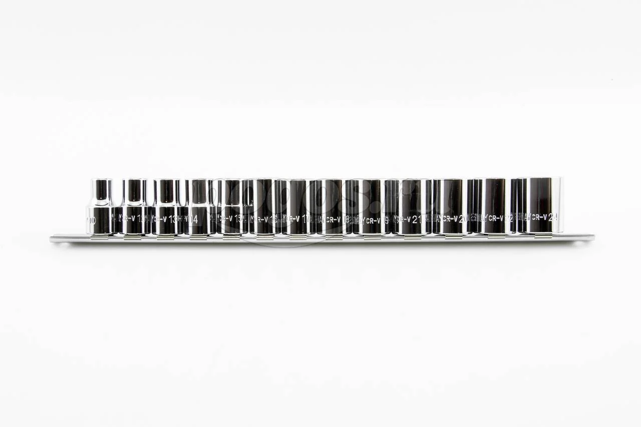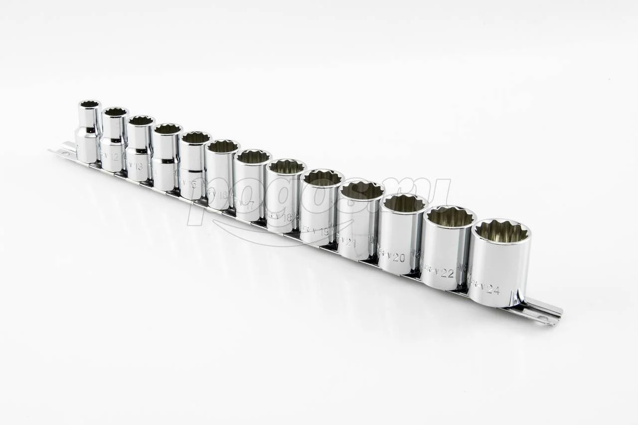 - Головки торцевые 12-ти гранные, 13 шт.: 10, 12, 13, 14, 15, 16, 17, 18, 19, 20, 21, 22, 24 мм.