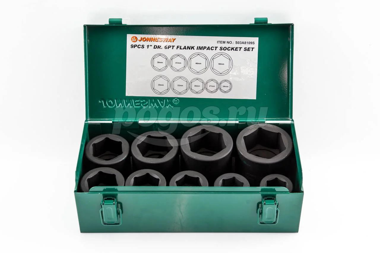 Набор ударных торцевых головок 9 предметов (1" DR 24-50 мм) Jonnesway, артикул: S03A8109S