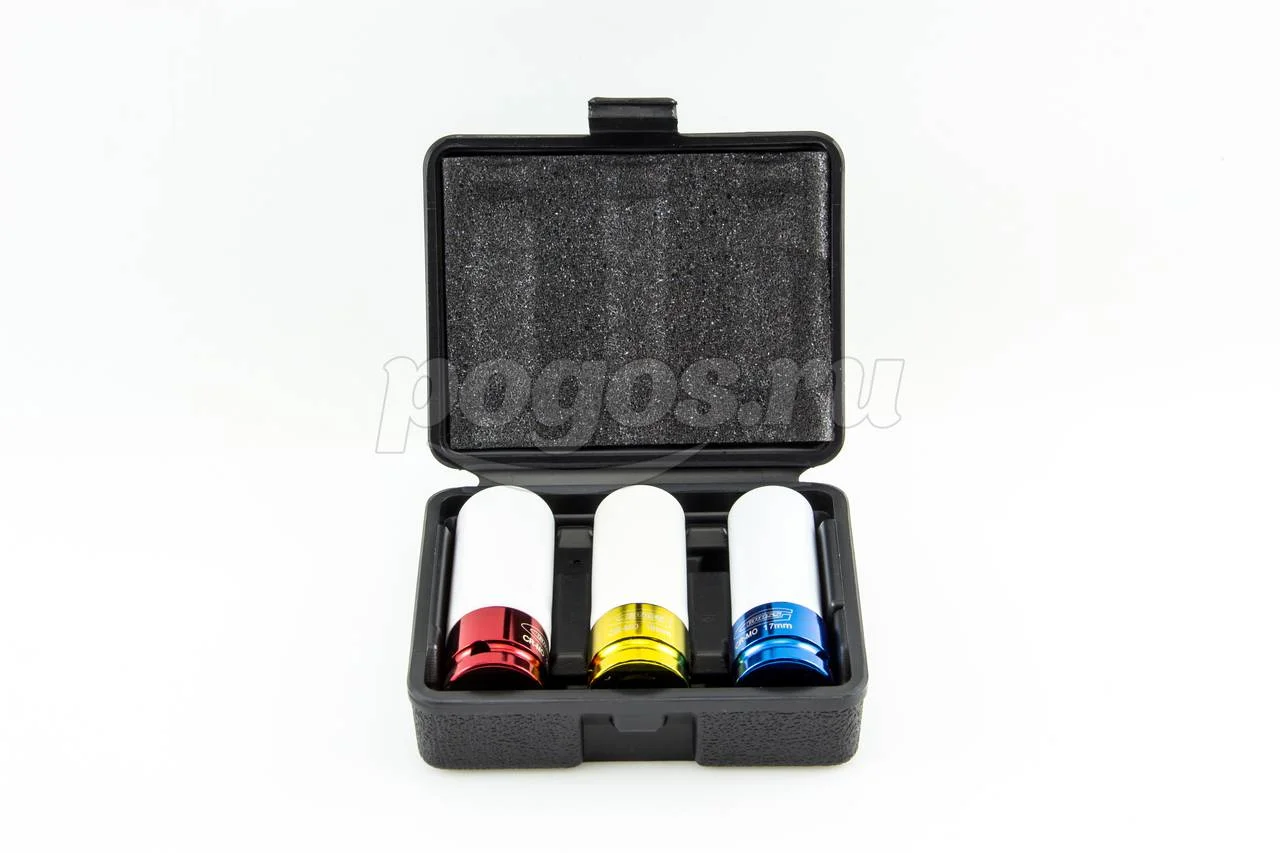 В набор входят 3 шестигранные головки с размерами: 17мм, 19мм, 21мм.