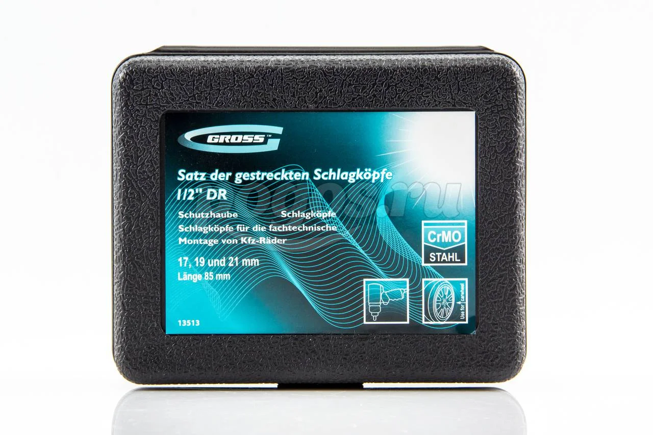 Набор удлинённых ударных 6-тигранных головок 17 мм, 19 мм, 21 мм GROSS, артикул: 13513