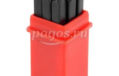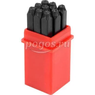 Изделия поставляются в прочном пластиковом держателе, который упрощает хранение и переноску полного набора клейм.