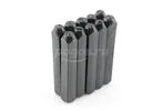 Изделия поставляются в прочном пластиковом держателе, который упрощает хранение и переноску полного набора клейм.