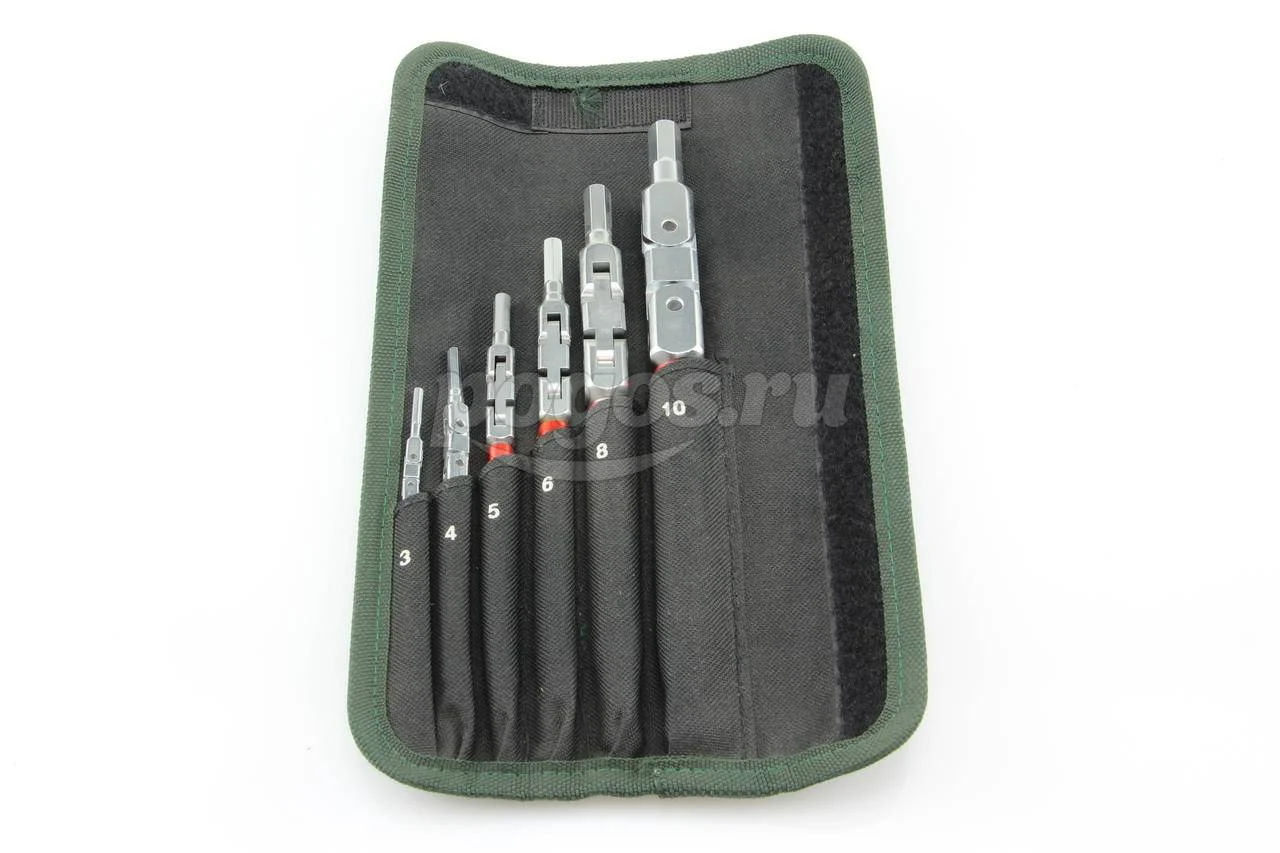 В наборе 6 предметов: НЕХ 3, 4, 5, 6, 8, 10 мм;