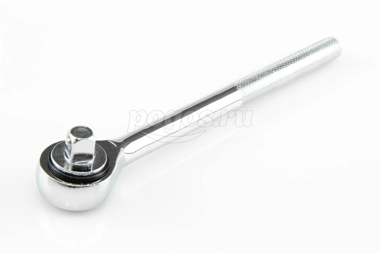 Ключ-трещотка изготовлен из хромванадиевой стали. Имеет антикоррозионное покрытие из хрома. Храповый механизм с переключателем обеспечивает плавный ход и возможность быстрой смены направлений вращения ключа.